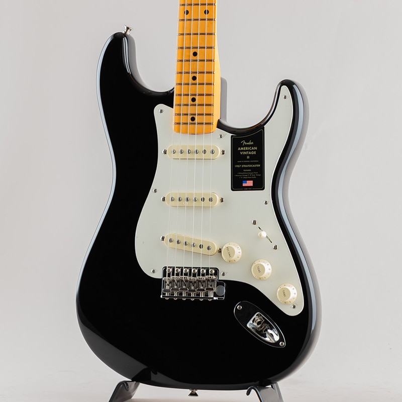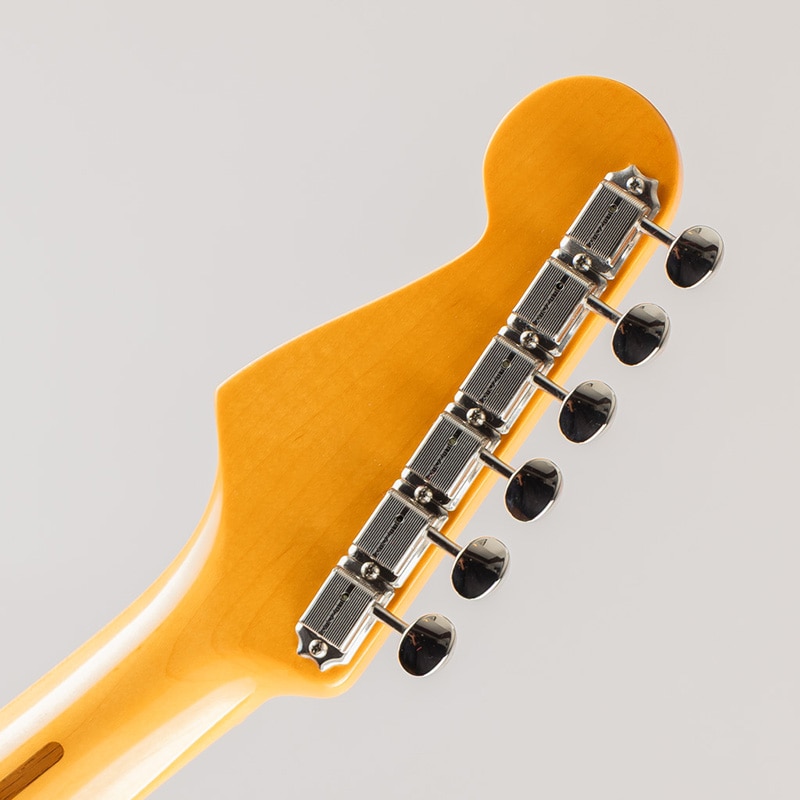 American Vintage II 1957 Stratocasterは、Pure Vintage '57 Stratocasterピックアップを3基搭載し、滑らかなボディコンター、7.25インチラジアスのメイプル指板を備えたVシェイプネックが特徴で、1957年に存在していたオリジナルモデルのトーンとフィーリングを再現しています。また、コールドロールド(冷間圧延)スチールブロックとベントスチールサドルを備えたPure Vintage Synchronized Tremolo、Fender Deluxeチューニングマシン、1-plyピックガードなどのプレミアムな仕様が採用されています。
