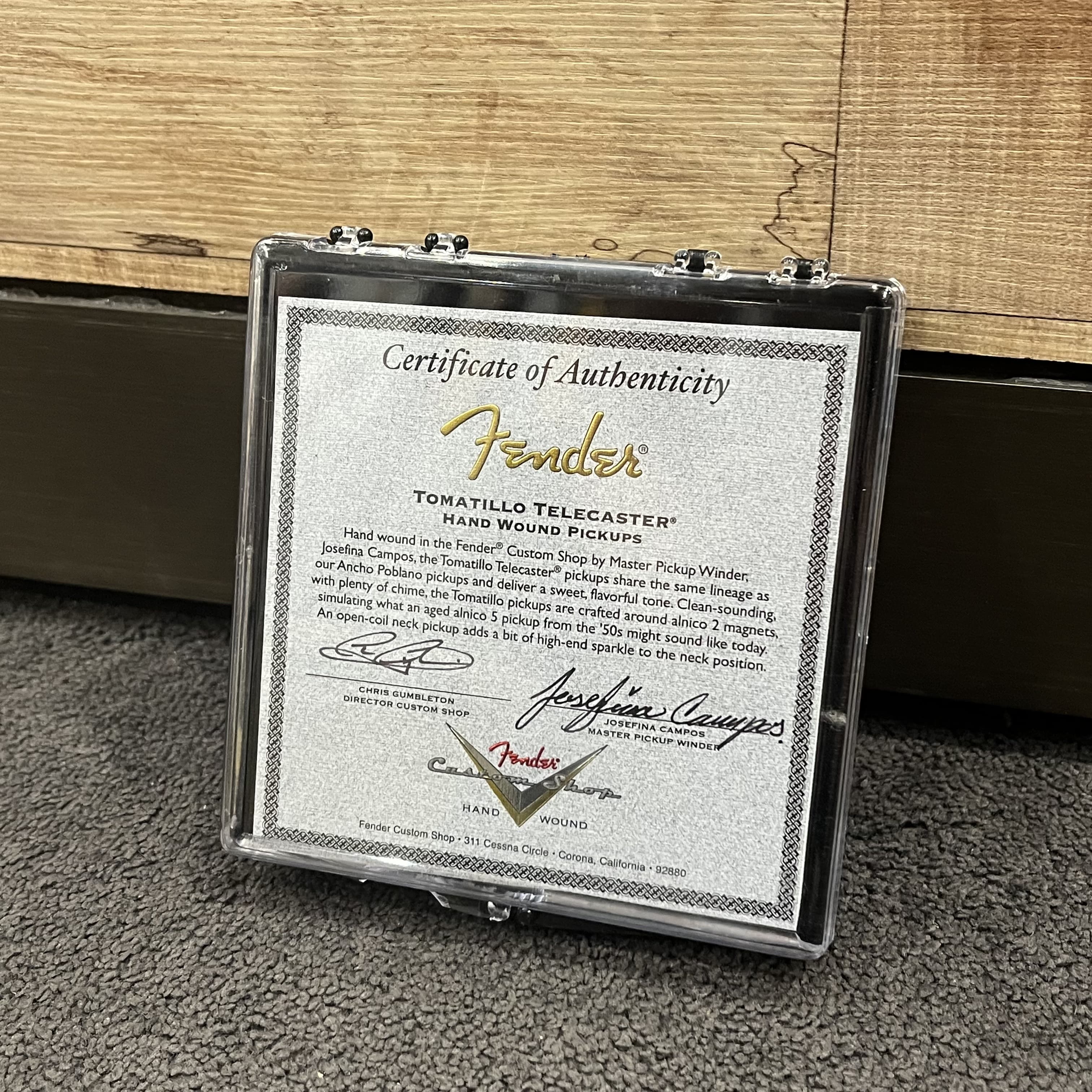 Fender Custom Shopのマスターピックアップワインダー、ホセフィーナ・カンポスの手によってハンドワウンドされたTomatillo Telecasterピックアップは、Ancho Poblanoピックアップと同じ系譜の、甘くで味わい深いトーンを生み出します。クリアで煌びやかなサウンドを備えたTomatilloピックアップは、アルニコ2マグネットを使用して製作されており、1950年代のアルニコ5ピックアップのサウンドを再現しています。オープンコイル仕様のネックピックアップ は、ネックポジションにハイエンドの輝きを加えます。