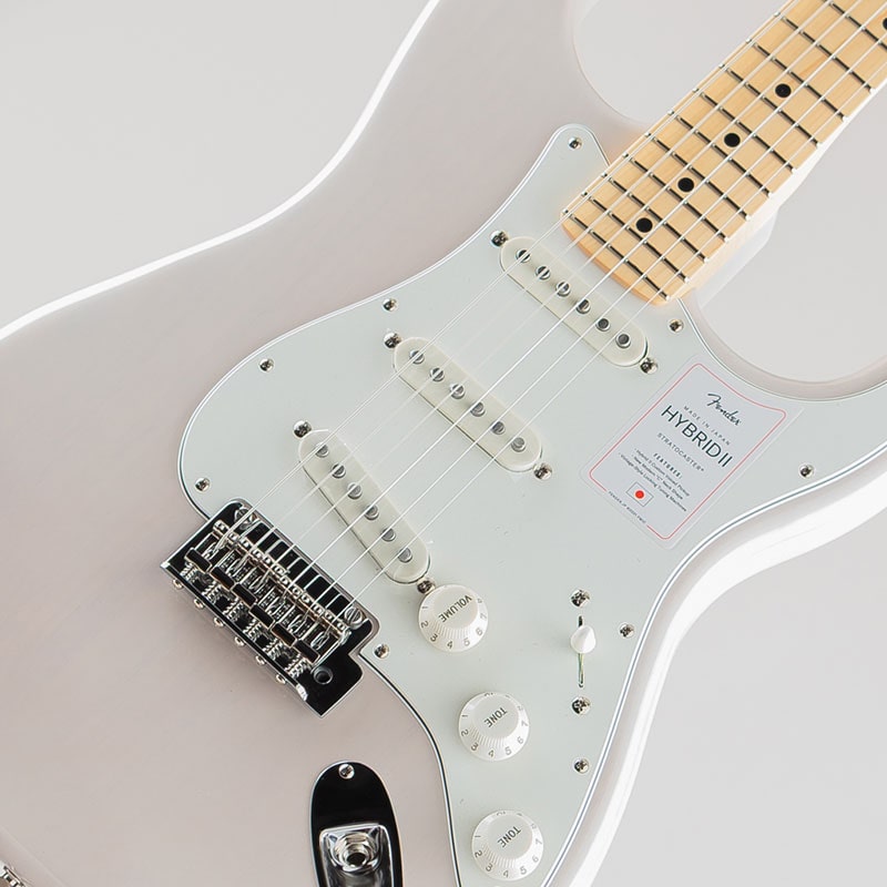 Made in Japan Hybrid IIは、ヴィンテージなルックスはそのままに、プレイヤーや音楽のジャンルを選ばないオールマイティーなモダンスペックを盛り込んだ、まさに「ハイブリッド」と呼ぶにふさわしいシリーズです。 リズム/リード問わず、どのギタリストやベーシストにもフィットする演奏性と楽器のトーンを兼ね備えた製品を、世界的にファンの多いMade in Japaneで実現しました。 Hybrid II Stratocasterは、定評あるアルダーボディに新設計のHybrid II Custom Voiced Single Coilピックアップを装備し、ヴィンテージスタイルサドル付きの2点支持トレモロシステムを搭載。ヴィンテージロッキングチューナー、Modern "C"シェイプにサテンフィニッシュのネック、9.5インチラジアスの指板とナロートールフレットがスムーズなプレイヤビリティを提供します。