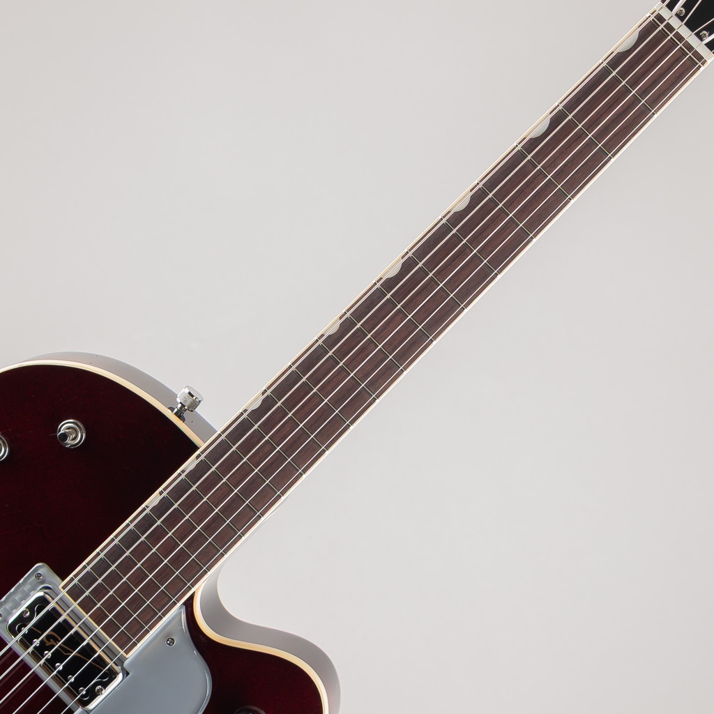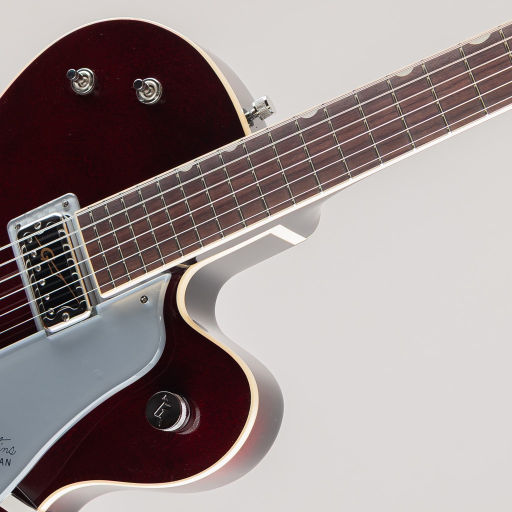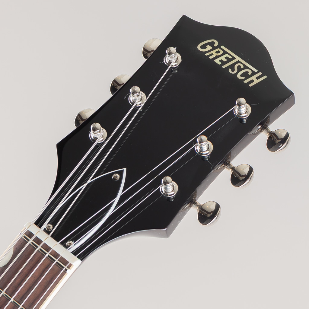ピュアなトーンと快適な演奏性のために設計されたこのギターは、ニッケルメッキ加工のGアロー・コントロールノブ、黒い縁飾り付きのエイジド・ホワイトバインディング、耐久性のあるグロスウレタン・フィニッシュ、エイジドパーロイド・サムネイルインレイを採用。グレッチロゴ入り、厚いヴィンテージ・スタイルのシルバー・プレキシピックガード、ニッケルメッキ加工のGrover Sta-Titeチューナーなど、グレッチファンが望む、伝統的な仕様の約束ごとを備えています。