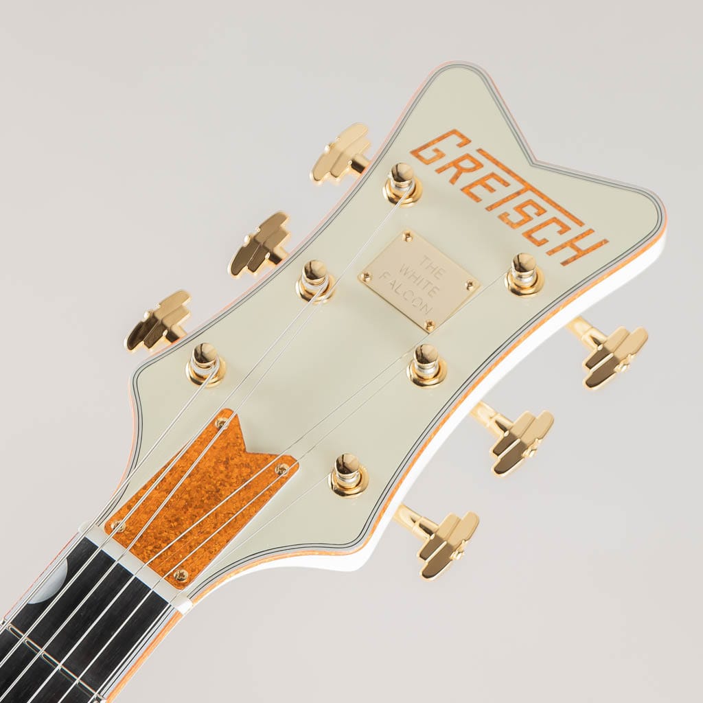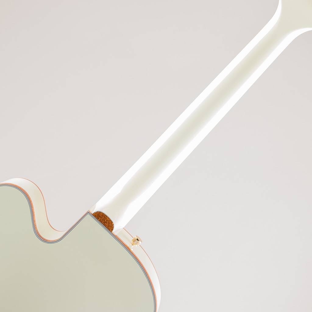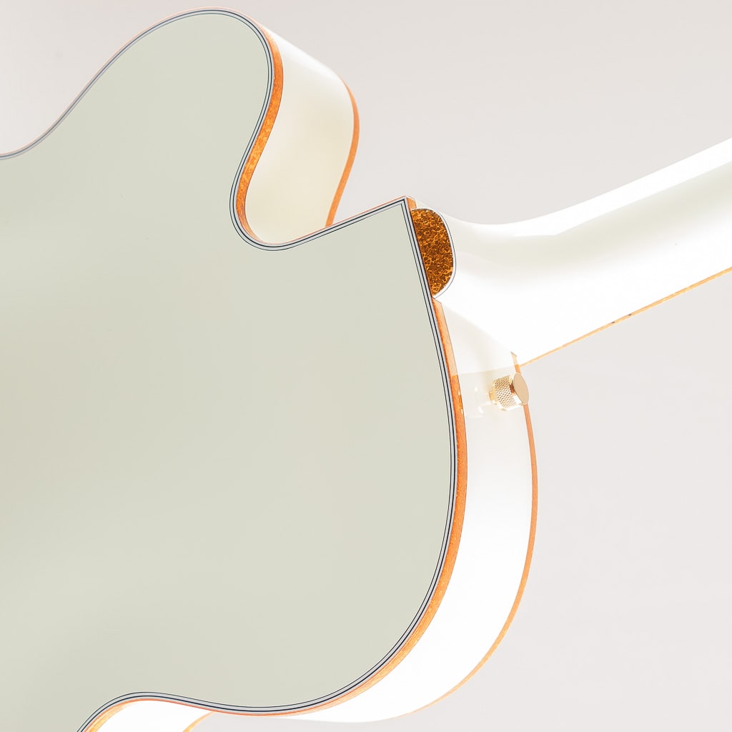 傑作と評されるオリジナルをより洗練させた、G6136T-59Vintage Select Edition '59Falcon Hollow Body with Bigsbyは、エレクトリック・ギターの黄金時代から続く正確な機能と、仕様的な取り決めを忠実に組み合わせたモデルです。 輝かしい音色と外観で耳と目を満足させるこの“珍しい鳥”は、プレイヤーが手にすることで命を宿し、あらゆるギターのストロークに応じで独特の声で歌います。 TV Jones Classic PUのペアは、強力なトーンと比類なきダイナミクスを生み出します。 グレッチの新しい“Squeezebox”ペーパーイン・オイルコンデンサーは、信じられないほどに洗練された高音域を提供します。 固定されたSpace Controlブリッジとボーンナットを組み合わせが、完璧なチューニングの安定性を実現。Bigsby B6GVTビブラートテールピースが、演奏に表現力豊かなきらめきを加えます。 1959年スタイルのトレッスル・ブレイシング、マルチプライのラミネート・メイプルバック&サイドと、響きの良い3プライ・メイプルトップのボディは、音に“大砲”のような驚くべき射影力を与え、豊かでバランスが取れたトーンを発射します。 滑らかな演奏性を実現するために、快適で汎用性の高い標準的な“U“字型プロファイルのメイプルネックを採用。22個のミディアム・ジャンボフレットを装備したラジアス12インチ(304.8ミリ)のエボニー指板と、クラシックなグレッチのサムネイル・インレイを採用し、複雑なコードや幅の大きいベンディング、複雑なシングルノートも楽に演奏できます。 とても象徴的かつ印象的なこのギターは、ゴールドのジュエルドGアロー・コントロールノブを使用。ボディ、ネック、Fホールにゴールドのスパークルバインディングを施すなど、とゴールドハードウェアを採用しています。ヴィンテージ・ホワイトグロスのニトロ・セルロースラッカー・フィニッシュを使用し、グレッチロゴが入ったゴールドの厚いヴィンテージ・プレキシピックガードを備えます。 見事なルックスと巨大なサウンドを備え、実に象徴的なG6136T-59 Vintage Select Edition '59Falcon Hollow Body with Bigsbyは、グレッチギターの“最高峰”です。 デラックス・ハードシェルケースが付属されます。