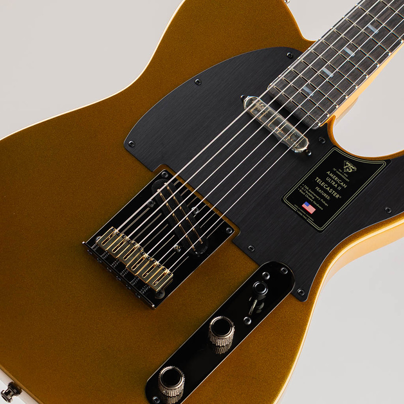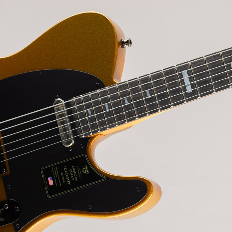 75th Anniversary American Ultra II Telecasterの厳選されたアルダーボディには、美しく成形されたコンター加工が施され、深みのある魅惑的なLiquid Goldカラーで仕上げられています。光を受けて豊かな表情を放つこのカラーは、温かみのあるゴールドの輝きと洗練されたエレガンスを兼ね備え、ステージでも圧倒的な存在感を放ちます。