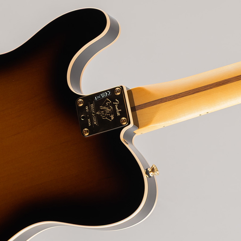 75th Anniversary V-Modピックアップは、テレキャスターの最大の魅力とも言えるトゥワングトーンと、クラシックなネックピックアップの温かみある唸りを兼ね備えています。トーンコントロールに装備されたプッシュ/プッシュ機能により、両ピックアップのパラレル/シリーズワイヤリングの切り替えが可能で、多彩なサウンドオプションを提供します。その他、ゴールドハードウェア、ヴィンテージスタイルのサドル式コンペンセイテッドブリッジ、ロッキングゴールドチューニングマシンなど、プレミアムな仕様を備えています。