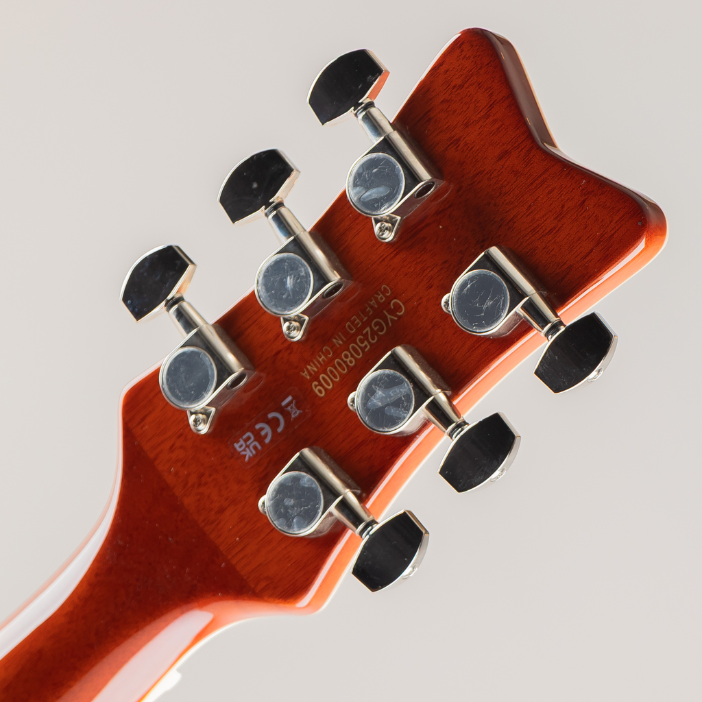 Electromatic Jetは、カーブドメイプルトップとチェンバー加工されたマホガニーボディが特徴です。卓越したアコースティックバランスを追求して設計されたこの精巧な組み合わせにより、力強いアタックに加え、豊かで存在感のあるミッドレンジ、深みのあるローエンド、そして輝くようなハイエンドが得られます。滑らかに丸められたネックヒール形状によりハイポジションへのアクセスもスムーズで、ボディに施されたさりげないコンフォートコンターが、演奏時の快適さとバランスの取れたフィット感を生み出します。