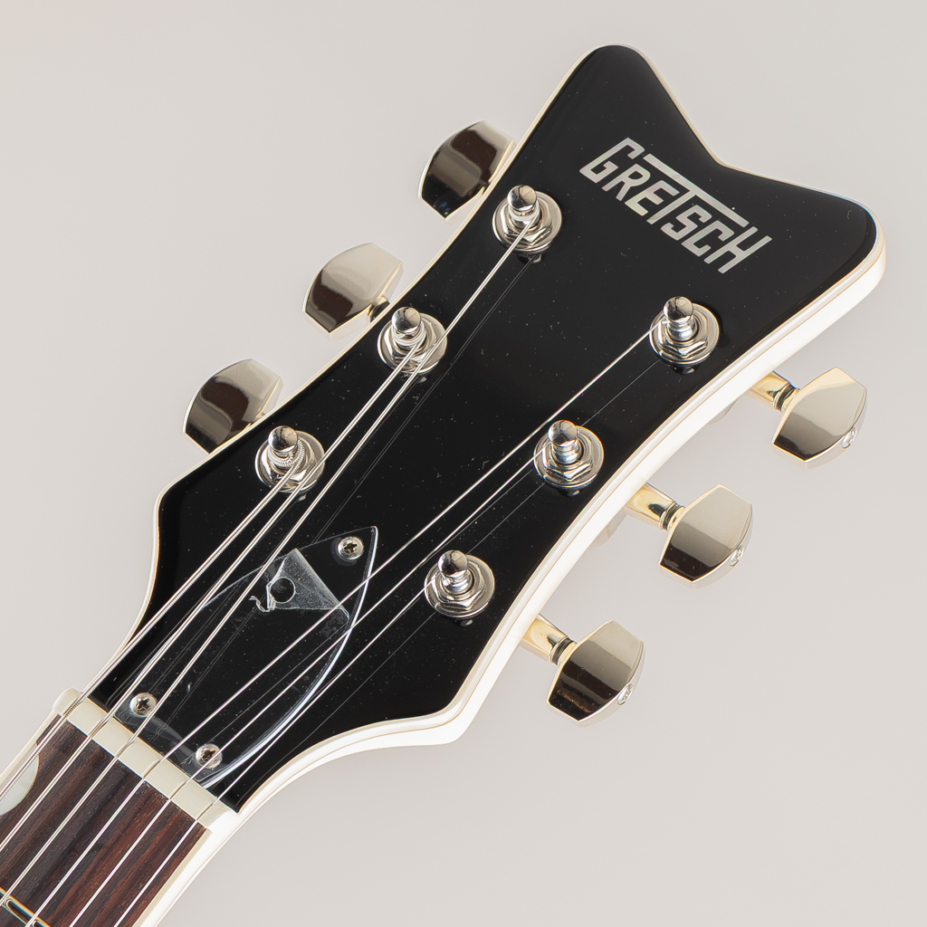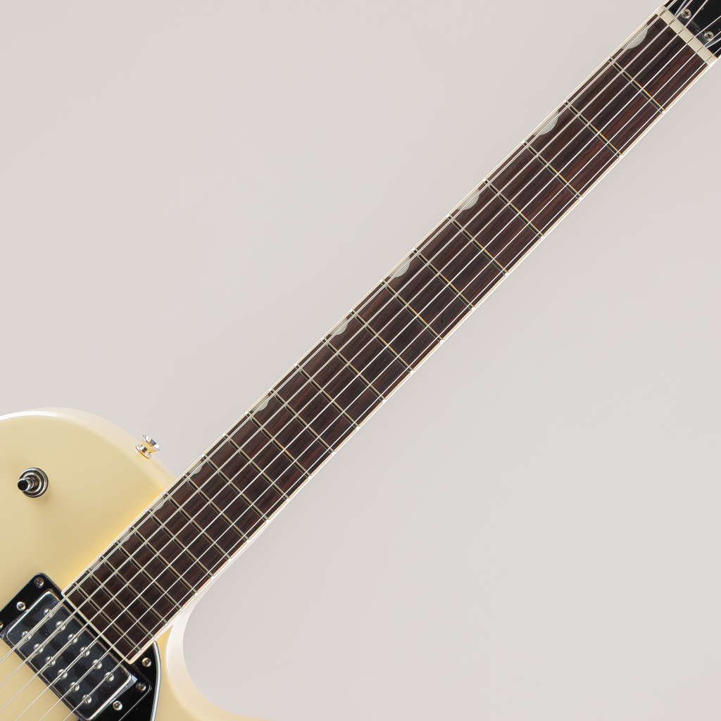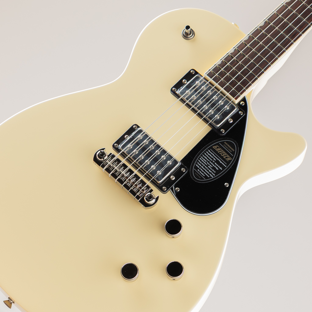 Electromatic Collectionは、ピュアなGretschパワーと伝統に忠実な仕様を求めるプレイヤーに最適な製品をラインナップしています。グレッチギターの象徴的なスタイルと優れた演奏性を兼ね備えたElectromatic Jet Clubは、力強いクリーントーンから灼熱のようなオーバードライブサウンドまで、指先ひとつで自在に表現できます。驚きをもたらすこのギターは、妥協なき演奏性、パワフルな多様性、洗練されたパフォーマンスを実現します。 <洗練されたボディコンターとラウンドネックヒール設計を備えたチェンバードマホガニーボディ> Electromatic Jetには、優れたアコースティックバランスと力強いアタックを実現するために、チェンバー加工が施されたマホガニーボディが採用されています。滑らかに丸められたネックヒール形状により、ハイポジションへのスムーズなアクセスが可能となり、ボディに施されたさりげないコンフォートコンターが、演奏時の快適さとバランスの取れたフィット感を生み出します。 <滑らかな演奏性を実現する“C”シェイプのマホガニーネックとバウンドローズウッド指板> ネックはバランスの取れた丸みのある"C"ネックシェイプで、テーパードショルダーデザインを採用することですべてのプレイヤーに快適な演奏経験をもたらします。適度な質量感が、全ポジションでの正確な演奏性を実現します。また、ネックに採用されているマホガニー材は力強く豊かなトーンを実現するのに理想的なサウンドキャラクターを備えています。指板は、トーンと演奏性を決定づける非常に重要なパーツです。Electromatic Jetは、のエイジドホワイトバインディングが施された本物の1-plyローズウッド指板を採用しており、滑らかでシルキーな弾き心地と、温かみのあるウッディなトーンを生み出します。 <チューニングの安定性を高めるGRAPHTECH NUBONEナット> GraphTech製のNuBoneナットは、均一でバランスの取れたトーン、豊かなレゾナンスとサスティンを実現します。弦の最適なブレイクアングルにより理想的なテンション感を確保し、ナット部における弦の引っかかり問題を解消します。長時間に及ぶ激しい演奏においても安定したチューニングを維持します。 <PUREVOLT TWIN SIXハムバッカー> PureVolt Twin Sixハムバッカーは、美しくダイナミックな表現力に溢れ、プレイヤーを虜にさせるパワーを誇ります。各ピックアップには、正確なアタックと自由自在な柔軟性を実現する、12個の調整可能なポールピースが搭載されています。ネックポジションにはアルニコIVマグネットとプレーンエナメルワイヤー、ブリッジポジションには、アルニコVマグネットは特別に調整されたプレーンエナメルコーティングワイヤーよってペアリングされており、明瞭かつ柔軟なトーンを特徴とした優れたバランスと荒々しいハムバッカーサウンドを生み出します。さらに、真空ワックスポッティングによってノイズや干渉を最小限に抑えます。 <Lockdownロッキングアジャスタブルラップアラウンドブリッジ> Lockdownロッキングアジャスタブルラップアラウンドテイルピースは、シンプルさと機能性を兼ね備えています。ブリッジとテイルピースが一体化したこのユニットは、サスティンと音の立ち上がりを向上させ、調整可能なサドルによって正確なイントネーションが得られます。ブリッジポストによってブリッジをしっかりと固定することで、弦のエネルギーを最大限に伝達し、安定したチューニングとスムーズな弦交換を可能にします。その結果、よりスケール感の大きい豊かなトーンに加え、パーカッシブなアタックとロングサスティンを実現します。 <洗練されたエレクトロニクス> Electromatic Jetのコントロール回路は、トーンを完全にコントロールできるよう設計されています。マスターボリュームにはトレブルブリード回路が組み込まれており、音量の大小に関わらず常にトーンの明瞭さを保ちます。マスタートーンは直感的に操作でき、どの設定でも優れたトーンが得られます。また、トーンコントロールのプッシュ/プルスイッチを引き上げることで、歯切れの良い、クリアなシングルコイルサウンドを手に入れられます。センターポジションでは2つのシングルコイルが組み合わさって、ハムキャンセル効果も発揮します。 Body Material: Chambered Mahogany Body Finish: Gloss Polyester Neck: Mahogany Neck Finish: Gloss Fingerboard: Bound Rosewood Frets: 22 Fret Size:Medium Jumbo Tuning Machines:Die-Cast Sealed Scale Length:24.6" (625 mm) Bridge:LockDown Locking Bridge Pickups:PureVolt Twin Six Humbucker Pickup 3-Position Toggle: Position 1. Bridge Pickup, Position 2. Middle and Neck Pickups, Position 3. Neck Pickup Controls: Master Volume with Treble-Bleed, Tone 1. (Neck Pickup), Tone 2. (Bridge Pickup) Auxiliary Switching:Push-Pull on each Tone Control Splits Bridge and Neck Pickups Respectively Special Electronics:Treble Bleed; Push-Pull Pot On Tone Pots For Coil Splits Hardware Finish: Nickel Strings: Nickel Plated Steel (.010-.046 Gauges)