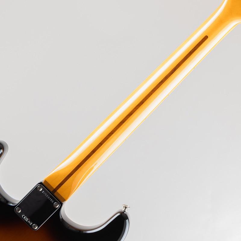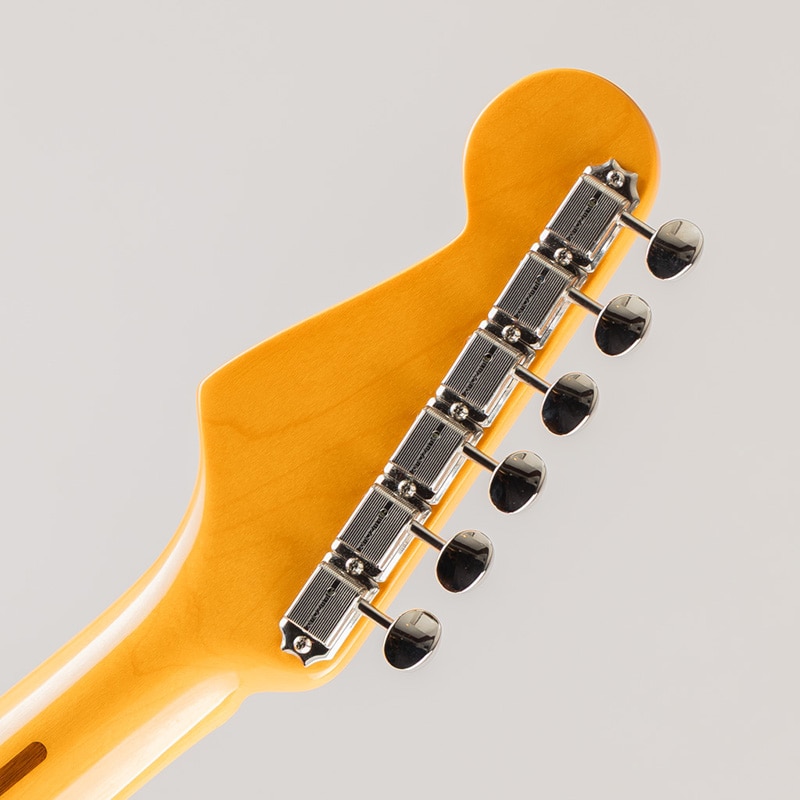 American Vintage II 1957 Stratocasterは、Pure Vintage '57 Stratocasterピックアップを3基搭載し、滑らかなボディコンター、7.25インチラジアスのメイプル指板を備えたVシェイプネックが特徴で、1957年に存在していたオリジナルモデルのトーンとフィーリングを再現しています。また、コールドロールド(冷間圧延)スチールブロックとベントスチールサドルを備えたPure Vintage Synchronized Tremolo、Fender Deluxeチューニングマシン、1-plyピックガードなどのプレミアムな仕様が採用されています。