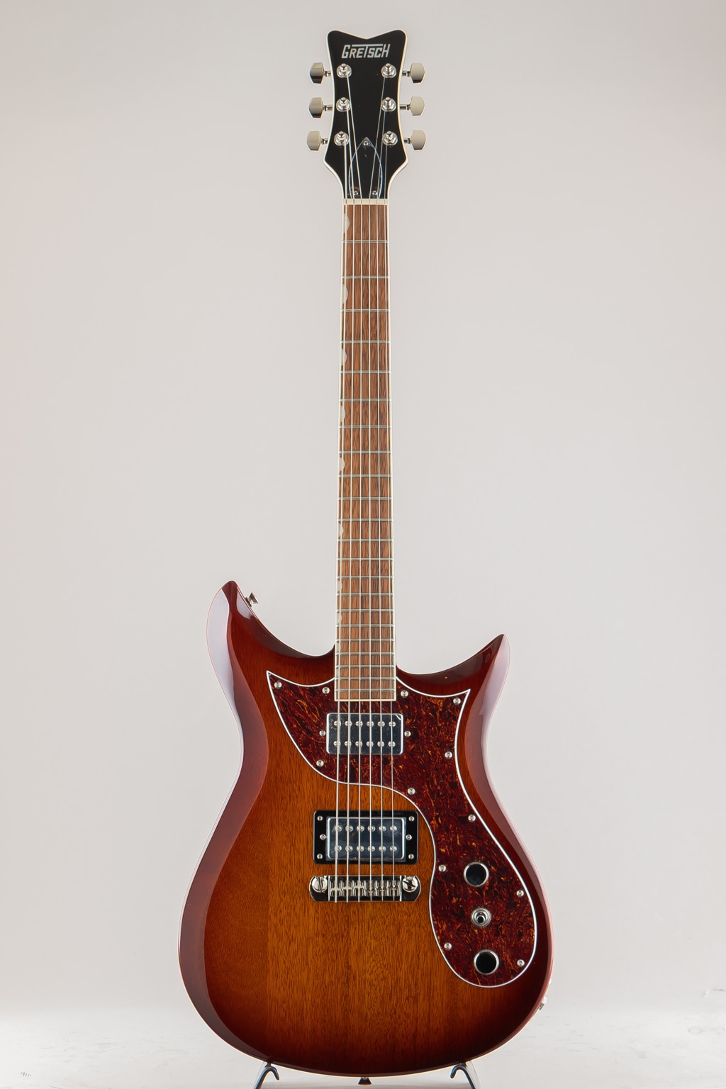 Gretschならではのスタイリングと演奏性を備えたElectromatic CVTは、あなたのサウンドとパフォーマンスを次のレベルへと導くために緻密に設計されています。レトロで洗練されたグレッチデザインを現代的に再解釈したCVTは、エッジに面取り加工を施したマホガニーボディ、快適で滑らかな演奏性を実現するPerformance “C”シェイプのボルトオン式マホガニーネック、そしてバランスの取れた力強いサウンドを生み出すTwin Sixハムバッカーを搭載しています。 <主な特長> エッジに面取り加工を施したマホガニーボディ バウンドローレル指板とパーロイドNeo-Classicサムネイルインレイを採用したボルトオン式マホガニーネック Performance “C”ネックシェイプ 24.6インチスケール Graph Tech NuBoneナット Twin Sixハムバッカー トレブルブリード付きマスターボリューム アジャスタブルサドル付きラップアラウンドブリッジ メタルG-Arrowコントロールノブ ニッケルハードウェア <ハイライト> ■ エッジに面取り加工を施したマホガニーボディ クラシックなグレッチデザインを洗練された形で再構築したElectromatic CVTのマホガニーボディは、独特な外観を引き立てるだけでなく、スムーズで快適な演奏性を実現。プレイヤーの身体の一部のように自然にフィットします。 ■ Twin Sixピックアップ アルニコ5マグネットを搭載したTwin Sixピックアップは、力強いミッドレンジとアタック感、シャープなハイエンド、そして豊かなローを兼ね備え、バランスと明瞭さに優れた、迫力あるサウンドを実現します。 ■ Performance “C”ネックシェイプ ボルトオン式のマホガニーネックは、快適でスピーディな演奏性を誇るPerformance “C”シェイプを採用。バインディングを施したローレル指板、ミディアムジャンボフレット、Graph Tech NuBoneナット、そしてパーロイドNeo-Classicサムネイルインレイが、演奏性・音質・スタイルのすべてにおいて高いクオリティを提供します。 Body Material: Mahogany Body Finish: Gloss Neck: Mahogany Neck Finish: Gloss Fingerboard: Laurel Frets: 22 Fret Size:Medium Jumbo Tuning Machines:Die-Cast Sealed Scale Length:24.6" (625 mm) Bridge:Adjustable Wrap-Around Pickups:Twin Six Humbucker Pickup Switching: 3-Position Toggle: Position 1. Bridge, Position 2. Bridge and Neck, Position 3. Neck Controls: Master Volume, Master Tone Hardware Finish: Nickel Strings: Nickel Plated Steel (.010-.046 Gauges)