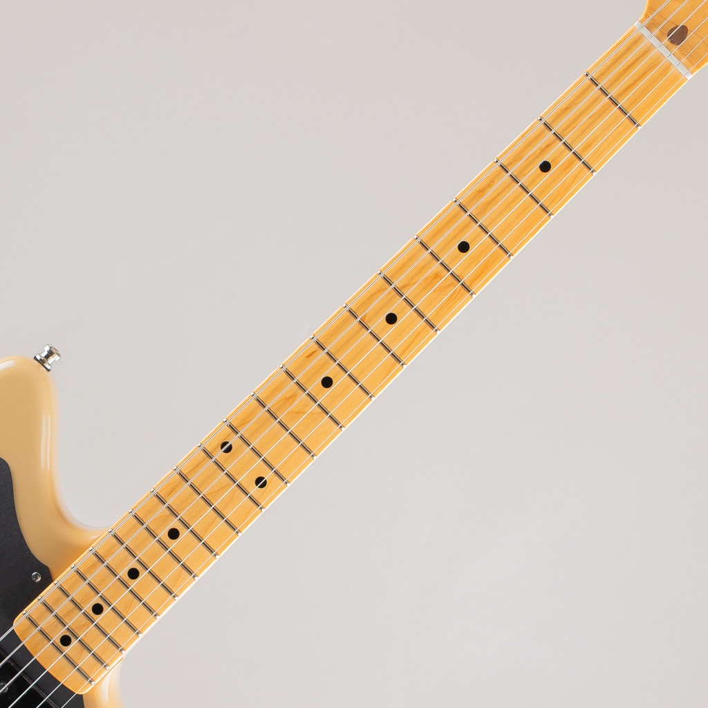 ネックには彼のシグネイチャーモデルでは初めてメイプル1ピースを採用し、ストラトキャスターのヘッドストックとの組み合わせが目を惹きます。ボディカラーのデザート・サンドとブラックのアノダイズドピックガードという1950年代の伝統的なデザインに対して、Mad Scientist(マッドサイエンティスト)の異名を持つピックアップ職人カーティス・ ノヴァクが独自に設計したワイドレンジハムバッカーを搭載し、これまでの INORANシグネイチャーには無かったハイゲインサウンドを出力します。さらに初号機から引き継がれている仕様として、Buzz-Stopの標準装備とプリセットスイッチの向きを90°反転することにより、INORANの特徴的なコードストロークやアルペジオプレイにおいても、ブリッジからの弦落ちやスイッチの誤動作の問題を解消しています。