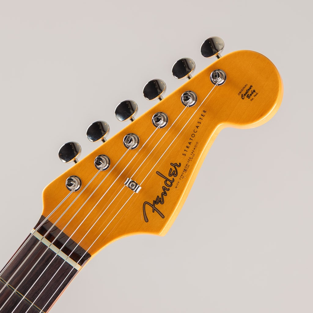 50年代後期から60年代初期にかけて、フェンダー製品は市場の人気を席巻し、ギターのラインナップが急速に多様化していく中においても、Stratocasterは依然として人気の頂点に君臨していました。1961年には、Stratocasterはより洗練された美しさを纏い、より鮮やかな赤と大胆な黒の縁取りを持つ3-Color Sunburstが主流のモデルとなり、Stratocasterの曲線を強調する3-plyピックガードが採用されるようになりました。