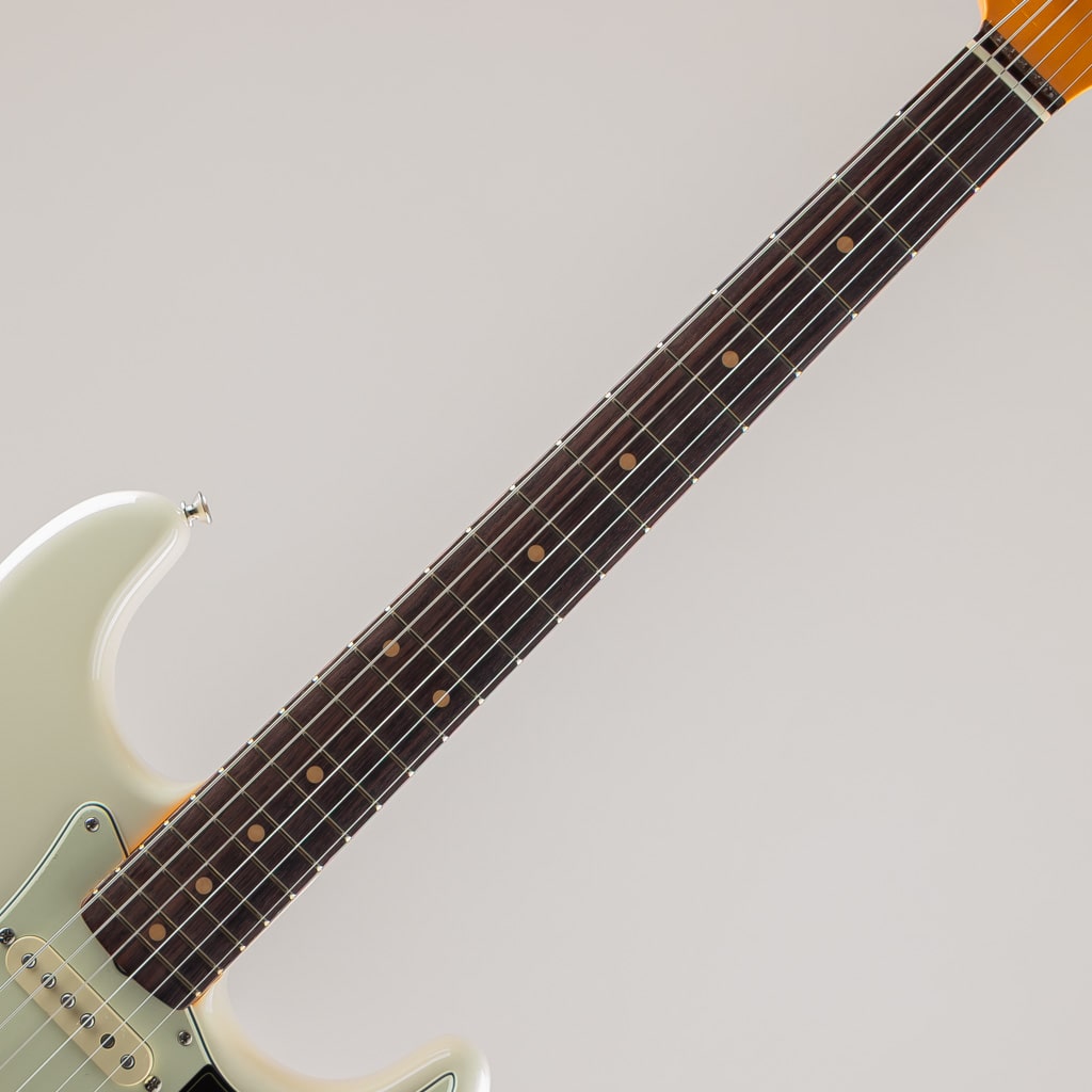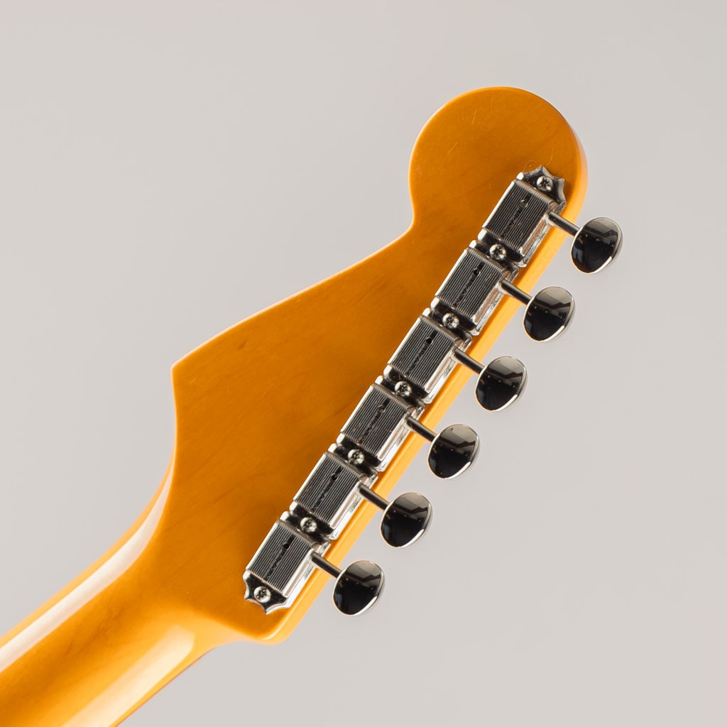American Vintage II 1961 Stratocasterは、Pure Vintage '61 Stratocasterピックアップを3基搭載し、7.25インチラジアスのスラブローズ指板を備えた1961 “C”シェイプネックが特徴で、1961年に存在していたオリジナルモデルのトーンとフィーリングを再現しています。また、コールドロールド(冷間圧延)スチールブロックとベントスチールサドルを備えたPure Vintage Synchronized Tremolo、Fender Deluxeチューニングマシン、3plyピックガードなどのプレミアムな仕様が採用されています。