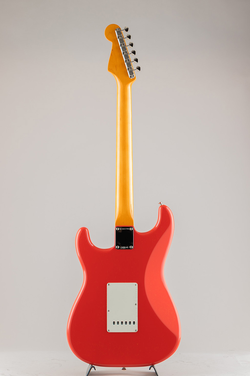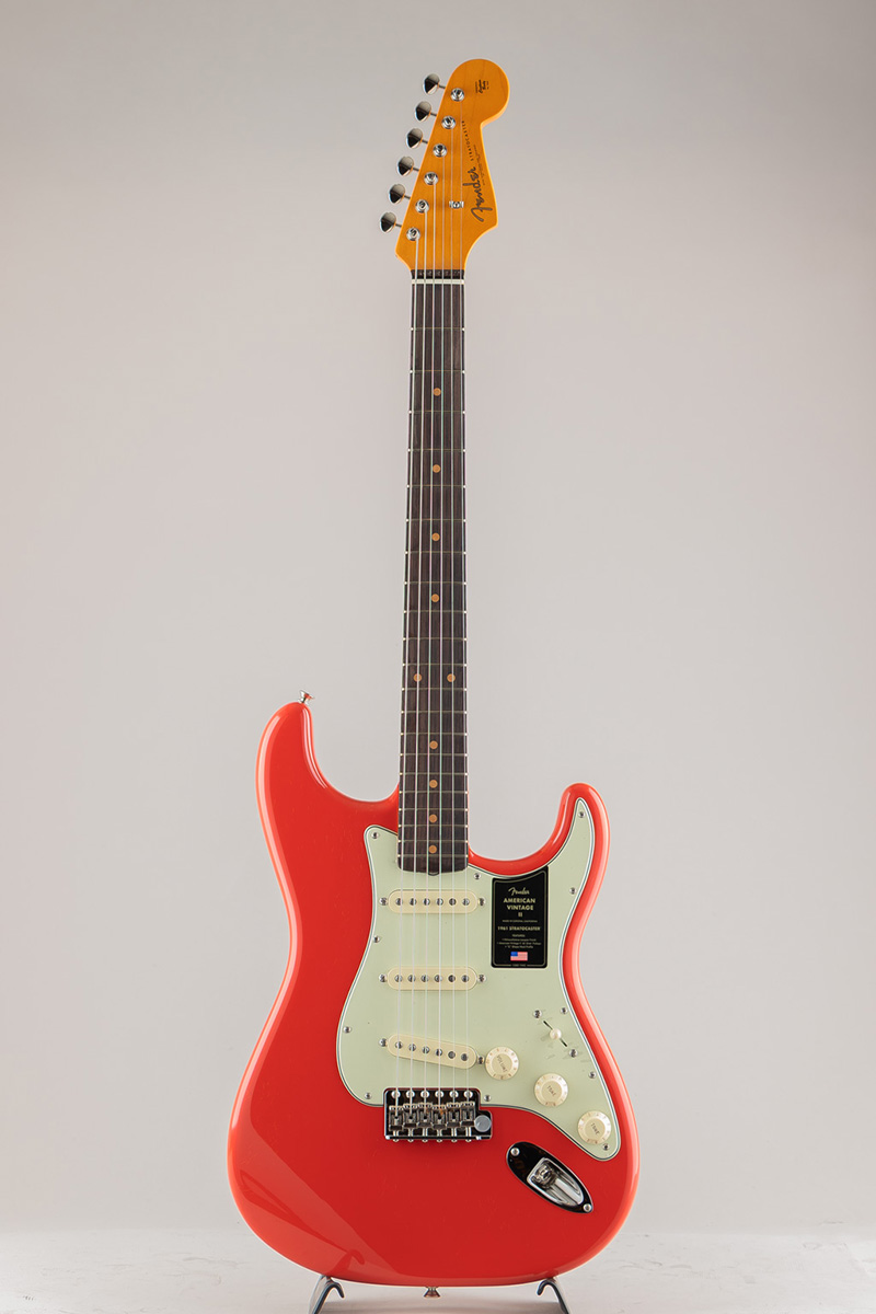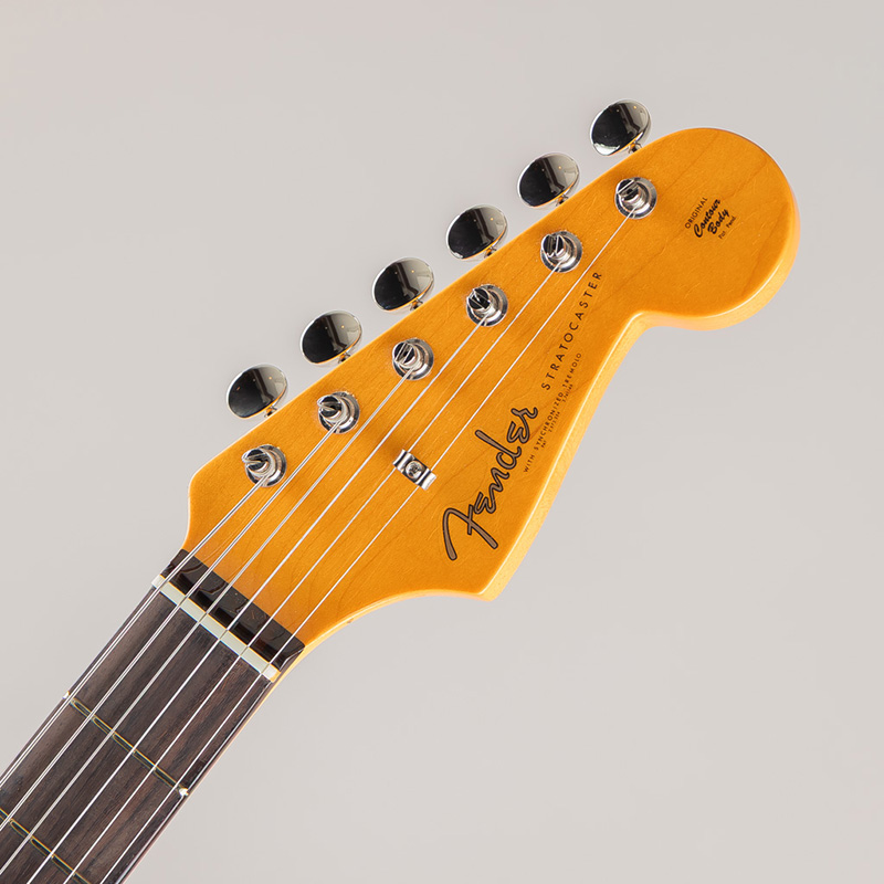 50年代後期から60年代初期にかけて、フェンダー製品は市場の人気を席巻し、ギターのラインナップが急速に多様化していく中においても、Stratocasterは依然として人気の頂点に君臨していました。1961年には、Stratocasterはより洗練された美しさを纏い、より鮮やかな赤と大胆な黒の縁取りを持つ3-Color Sunburstが主流のモデルとなり、Stratocasterの曲線を強調する3-plyピックガードが採用されるようになりました。