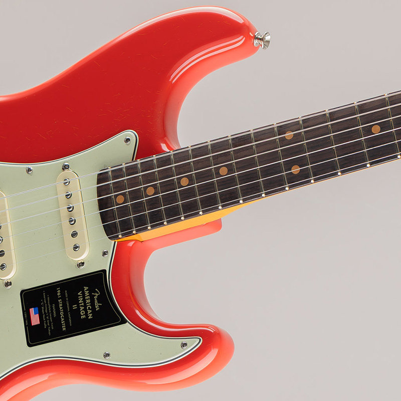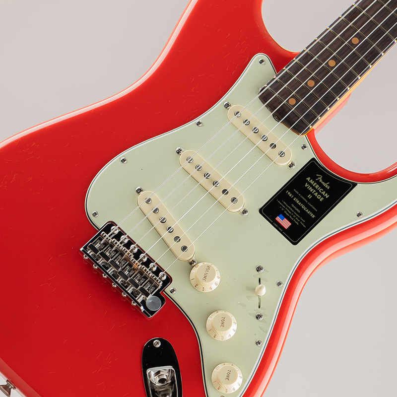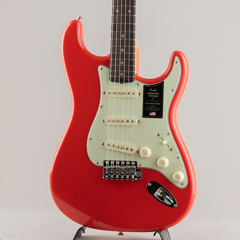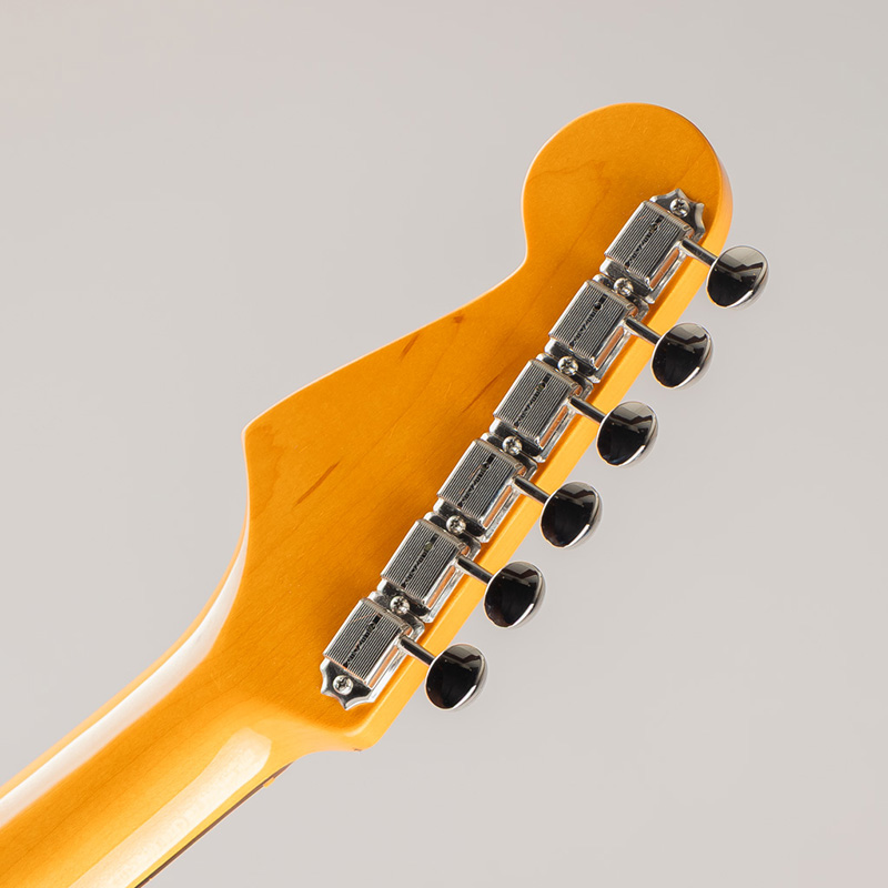 American Vintage II 1961 Stratocasterは、7.25インチラジアスのスラブローズ指板を備えた1961 “C”シェイプネックが特徴で、1961年に存在していたオリジナルモデルのトーンとフィーリングを再現しています。また、コールドロールド(冷間圧延)スチールブロックとベントスチールサドルを備えたPure Vintage Synchronized Tremolo、Fender Deluxeチューニングマシン、3plyピックガードなどのプレミアムな仕様が採用されています。
