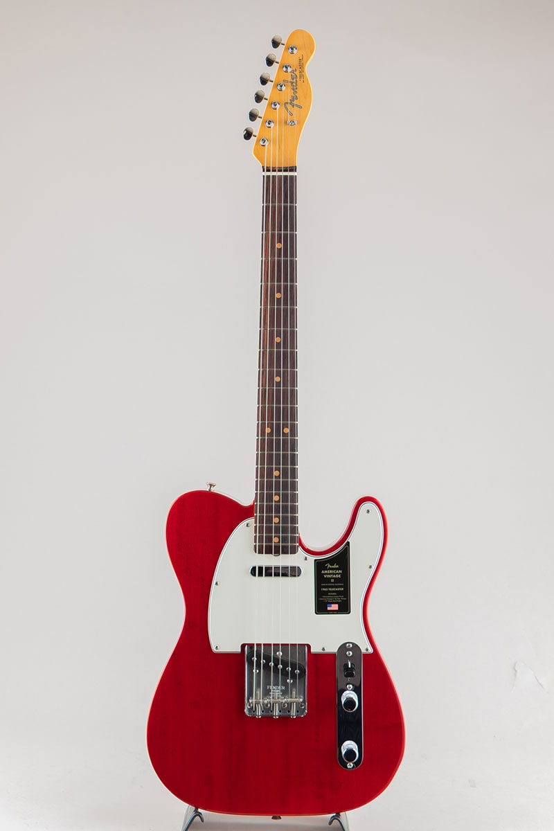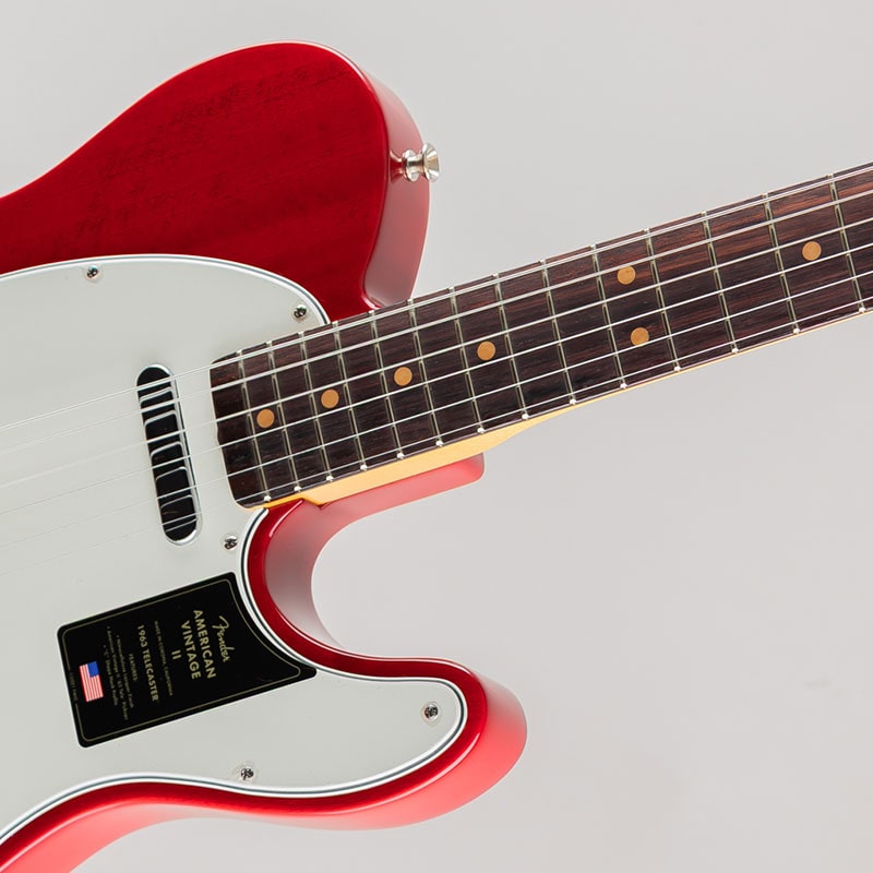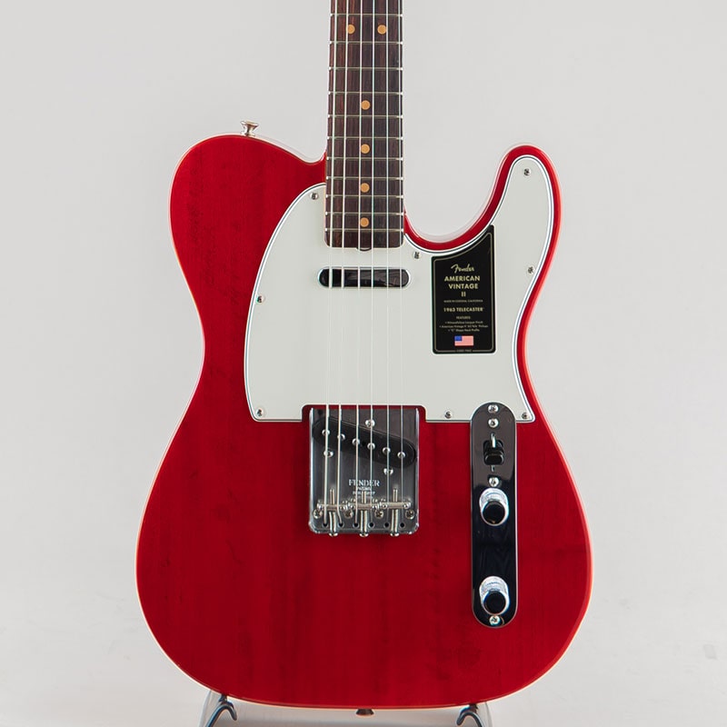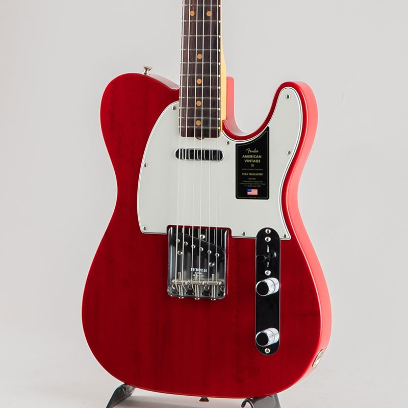 1963年には、新しいトーンウッドの組み合わせとして、サウンドにパンチがあり明瞭度の高いアルダー材に、ウォームなトーンを提供するラウンドローズ指板を採用したモデルが登場し、Telecasterの特徴的なトゥワングサウンドがさらに強調されるようになりました。Pure Vintage '63 Telecasterピックアップ、3スレッデッドスティールサドルブリッジ、7.25インチラジアス指板を配した快適な1963 "C"シェイプメイプルネックを装備したAmerican Vintage II 1963 Telecasterは、1963年当時に生産されてたオリジナルモデルの真髄といえるトーンとフィーリングを再現しています。本モデルは、12フレットのポジションインレイの間隔が若干狭いクレイドットといった細部にまでこだわり抜いて再現されています。マホガニーボディにCrimson Red Transparentフィニッシュ、アルダーボディにSurf Greenフィニッシュといった2色のモデルをラインナップしています。