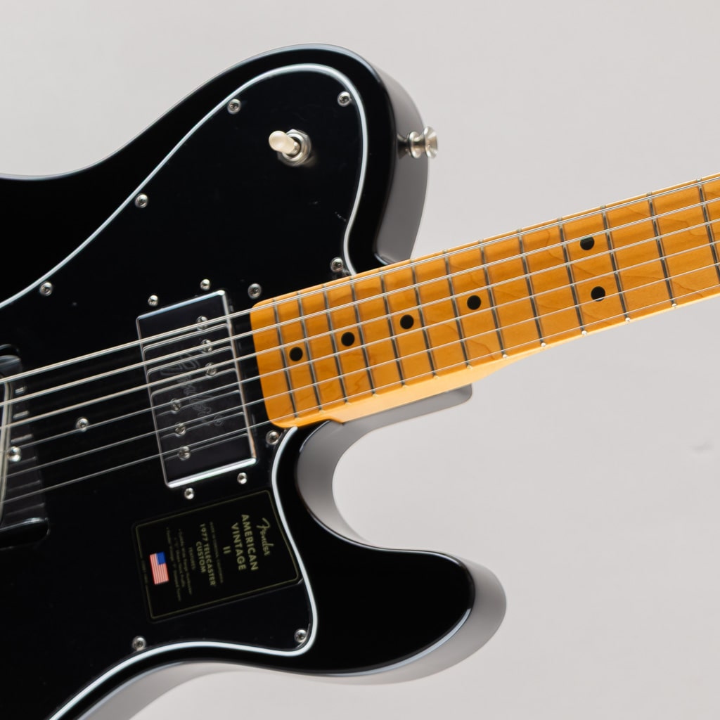 このTelecaster Customは、ネックポジションにWide Rangeハムバッカー、ブリッジポジションにPure Vintage ‘77 Single-Coil Teleピックアップを搭載しています。本格的なWide Rangeハムバッカーを作るために、1981年以来生産されていなかったCuNiFeマグネットをオリジナルのサウンドを再現するために不可欠な要素として復活させました。American Vintage II 1977 Telecaster Customは、1977 “C”シェイプの密度の高いメイプルネックに21本のヴィンテージトールフレットを配した7.25インチラジアスのメイプルまたはローズウッド指板を採用し、まるで1977年に舞い戻ったかのような、当時の楽器の演奏性を彷彿させます。その他、6つのスロテッドスチールバレルサドルを備えたTeleブリッジ、Fロゴチューナー、ヘッドに配置された便利なBulletスタイルトラスロッドナット、Micro-Tilt付きの3ボルト式ネックプレートなどを装備しています。