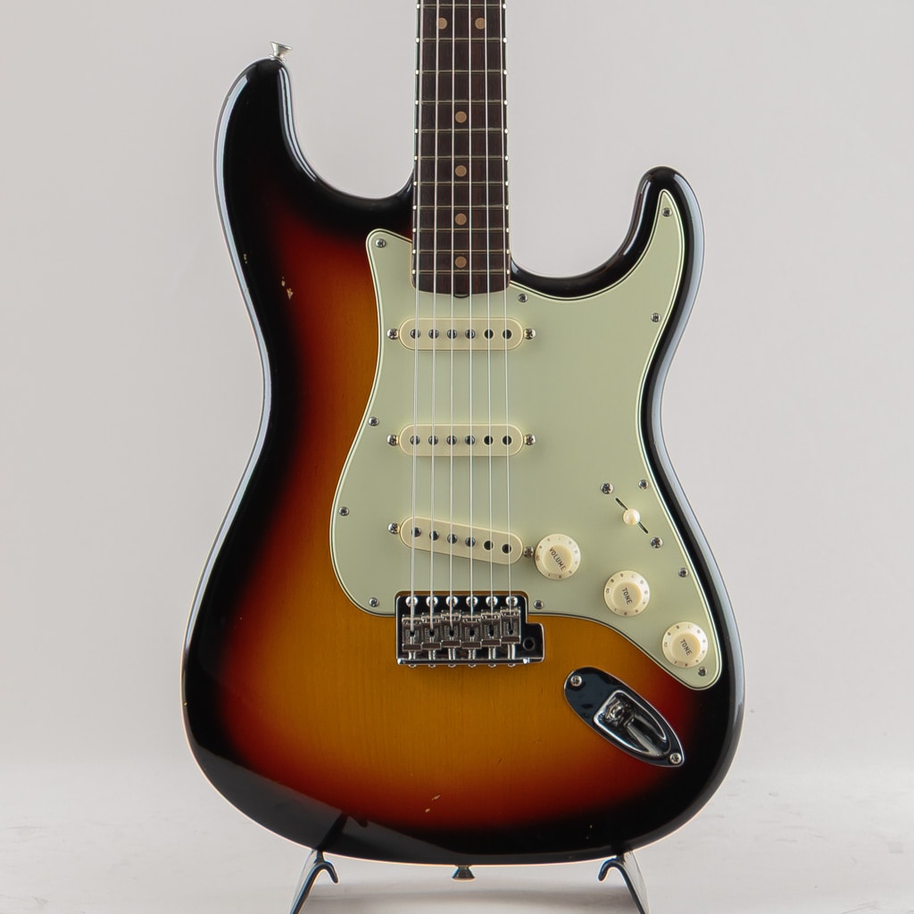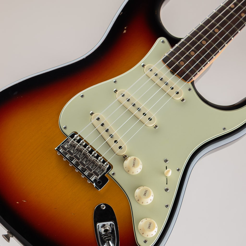 アルダー2ピースボディー、62Cよりもやや厚みを持たせた63Cシェイプメイプルネック、ラウンドボード仕様の63 Stratocaster Journeyman Relic/3-Color Sunburstが入荷致しました。
