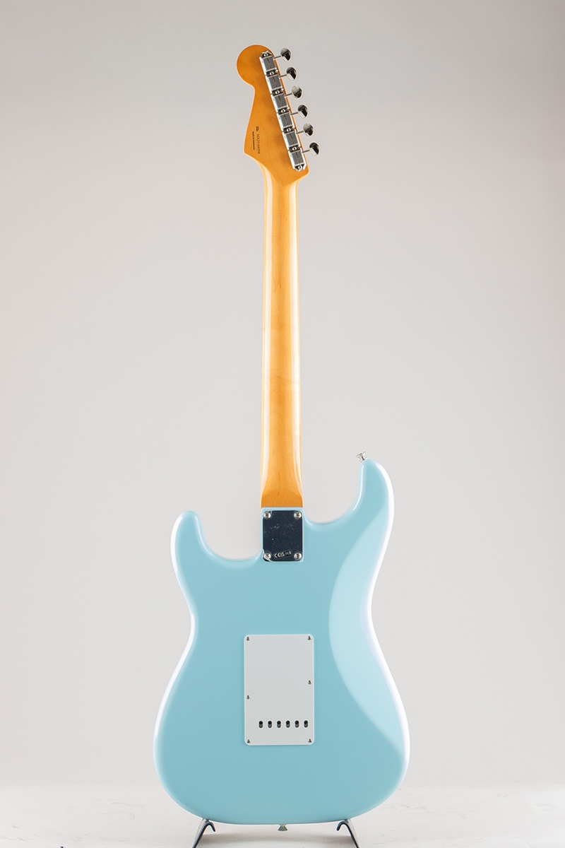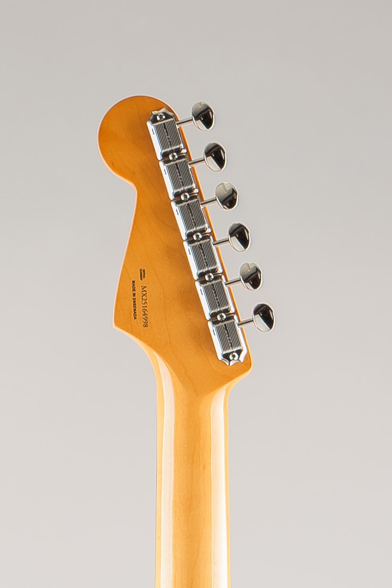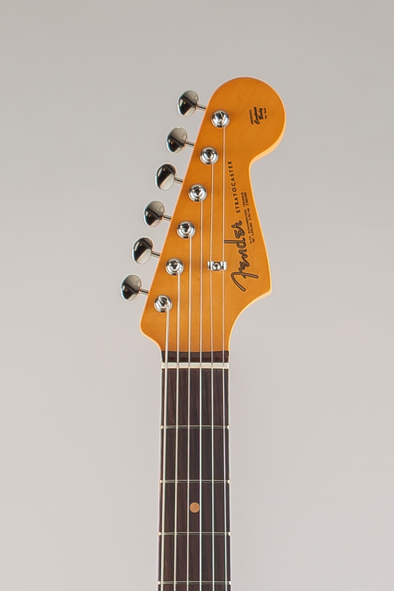 オーセンティックな60年代初期の“C”シェイプネックは、手に自然に馴染む、どこか懐かしい弾き心地を提供。7.25インチラジアス指板とヴィンテージトールフレットが、抜群の快適性と優れた演奏性を実現します。 サウンドの要となるピックアップには、丁寧に作り込まれた60年代初期仕様のヴィンテージスタイルシングルコイルを3基搭載し、Fenderサウンドを確立した明るく音楽的なトーンを余すことなく表現します。ヴィンテージスタイルのシンクロナイズドトレモロは滑らかなヴィブラートを可能にし、年代仕様のヴィンテージスタイルチューニングマシンは、クラシックな外観を保ちながら優れたチューニング精度を実現します。