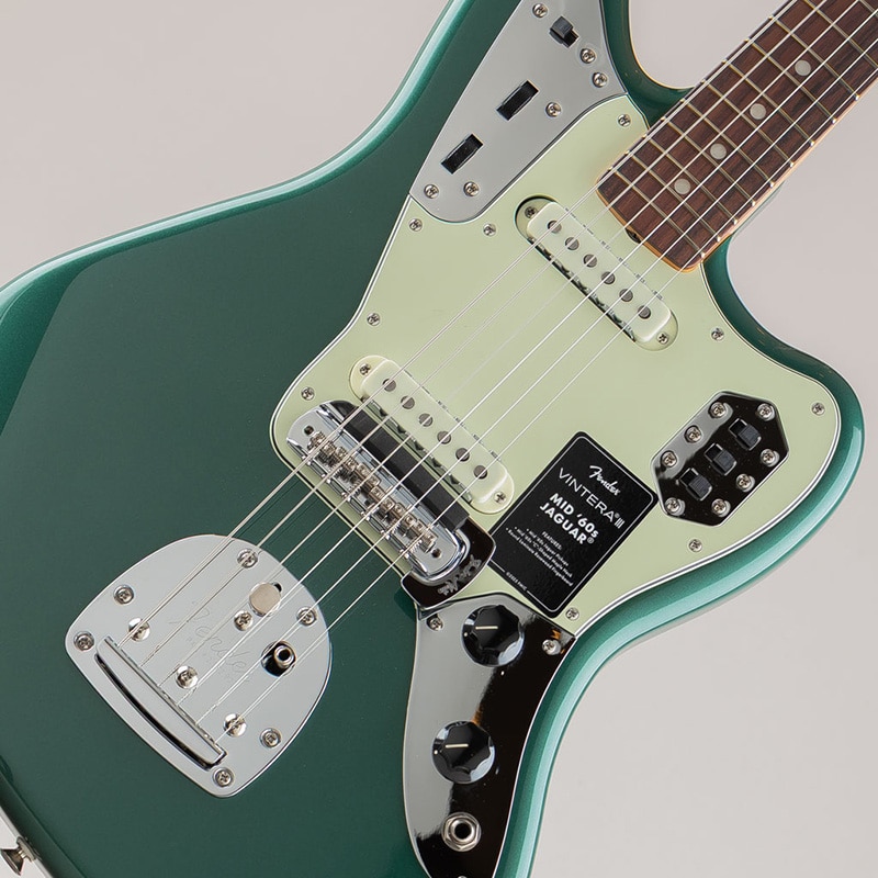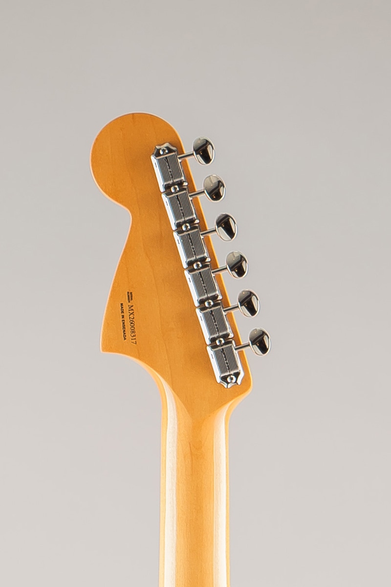 オーセンティックな60年代中期の“C”シェイプネックは、手に自然に馴染む、どこか懐かしい弾き心地を提供。7.25インチラジアス指板とヴィンテージトールフレットが、抜群の快適性と優れた演奏性を実現します。 サウンドの要となるピックアップには、丁寧に作り込まれた60年代中期仕様のヴィンテージスタイルシングルコイルを2基搭載し、Fenderサウンドを確立した甘く煌めきのあるトーンを余すことなく表現します。その他、ヴィンテージスタイルのトレモロロック付きフローティングトレモロ、音作りの幅を広げる当時仕様のリズムサーキット、ヴィンテージスタイルのJaguarミュートといった特徴を備えています。ヴィンテージスタイルの様々なディテールがクラシックな美しさをエンハンスし、当時に忠実なチューニングマシンが高いチューニング精度を実現します。