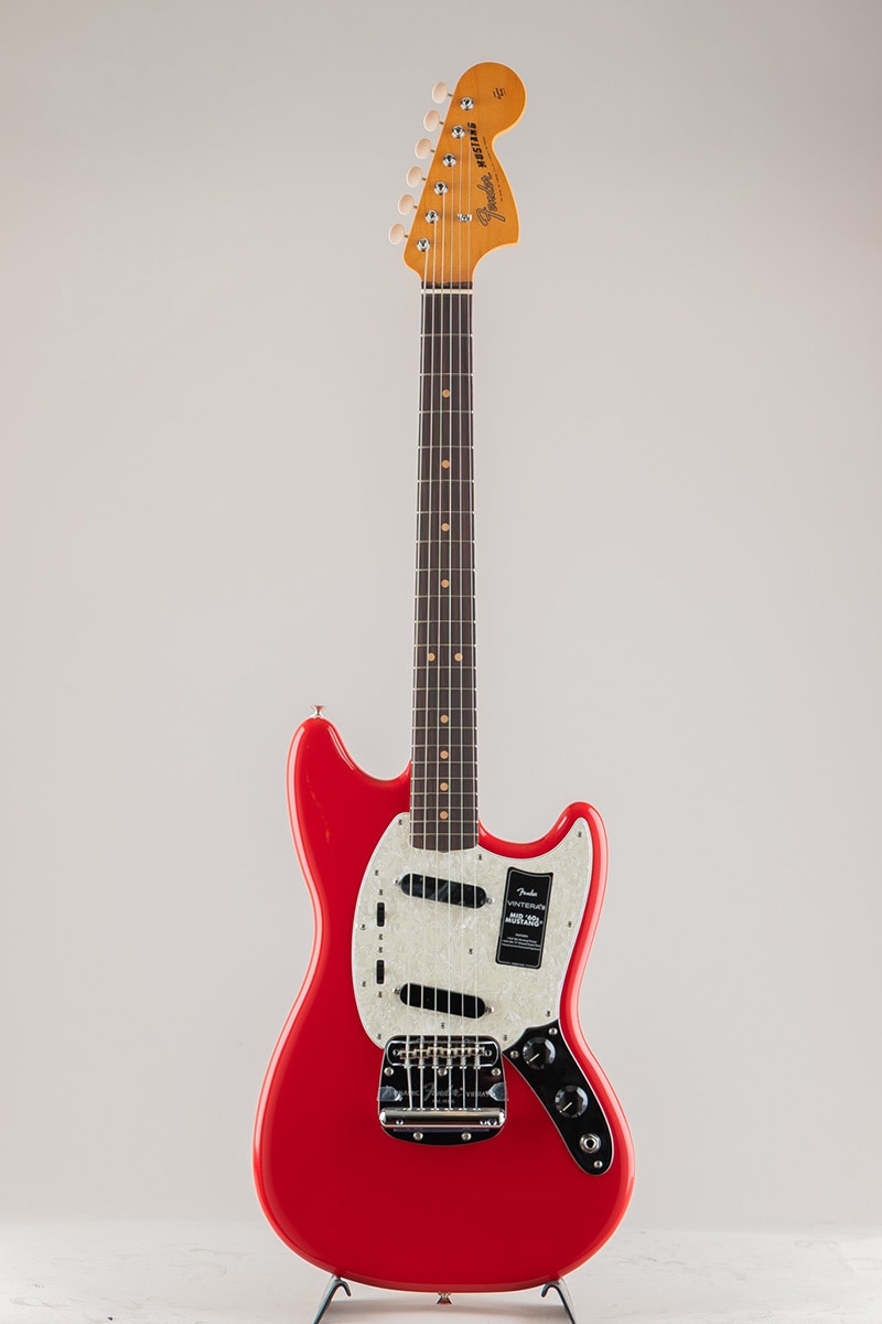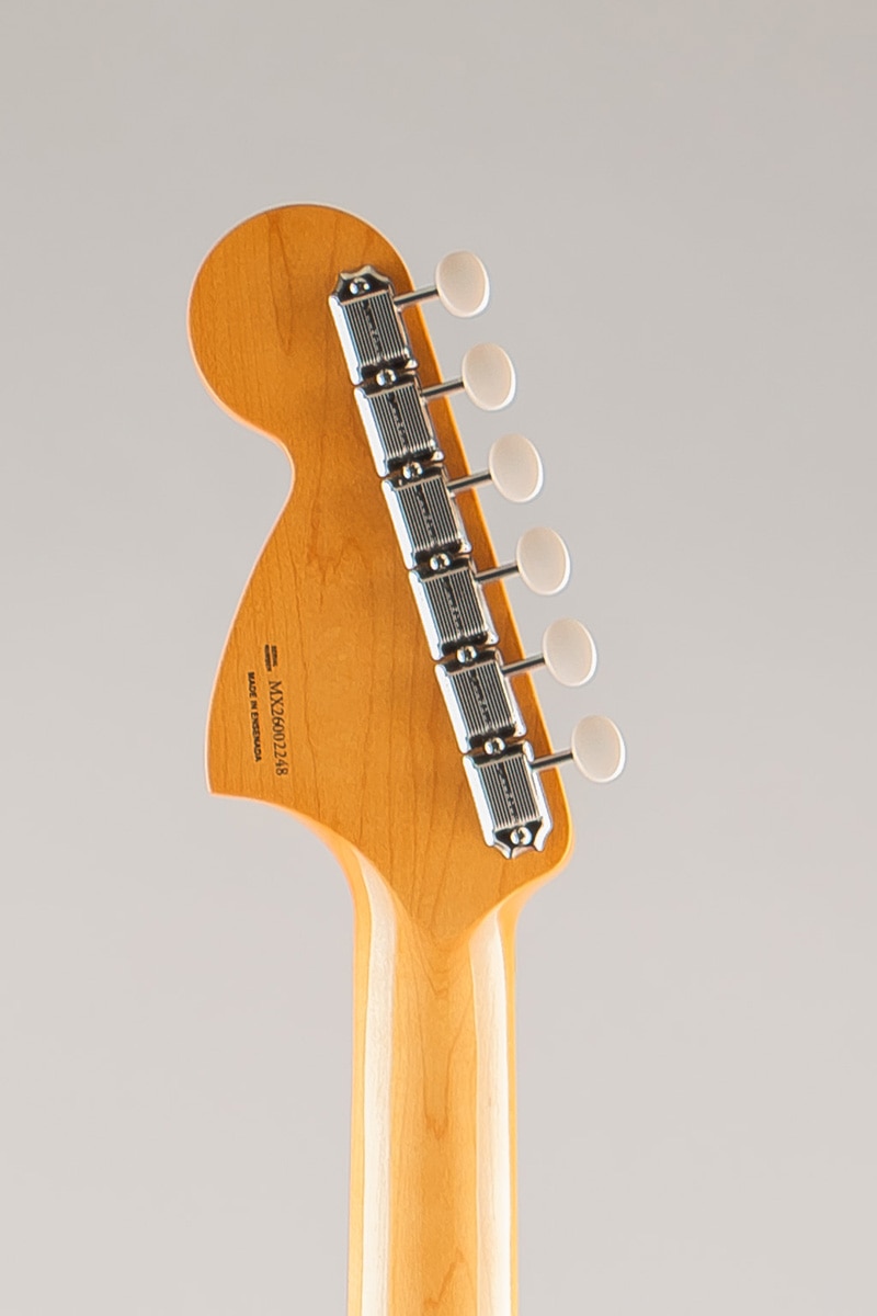 オーセンティックな60年代中期の“C”シェイプネックは、手に自然に馴染む、どこか懐かしい弾き心地を提供。7.25インチラジアス指板とヴィンテージトールフレットが、抜群の快適性と優れた演奏性を実現します。 サウンドの要となるピックアップには、丁寧に作り込まれた60年代中期仕様のヴィンテージスタイルシングルコイルを2基搭載し、Fenderサウンドを確立した甘く煌めきのあるトーンそして温かくウッディなミッドレンジを余すことなく表現します。その他、ヴィンテージスタイルのMustangフローティングトレモロはスムーズなピッチ操作を可能にします。ヴィンテージスタイルの様々なディテールがクラシックな美しさをエンハンスし、当時に忠実なチューニングマシンが高いチューニング精度を実現します。