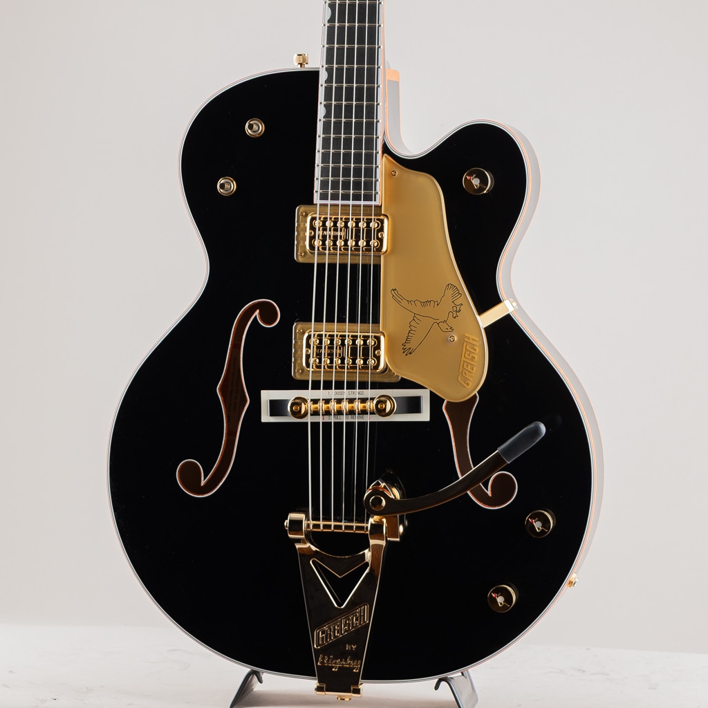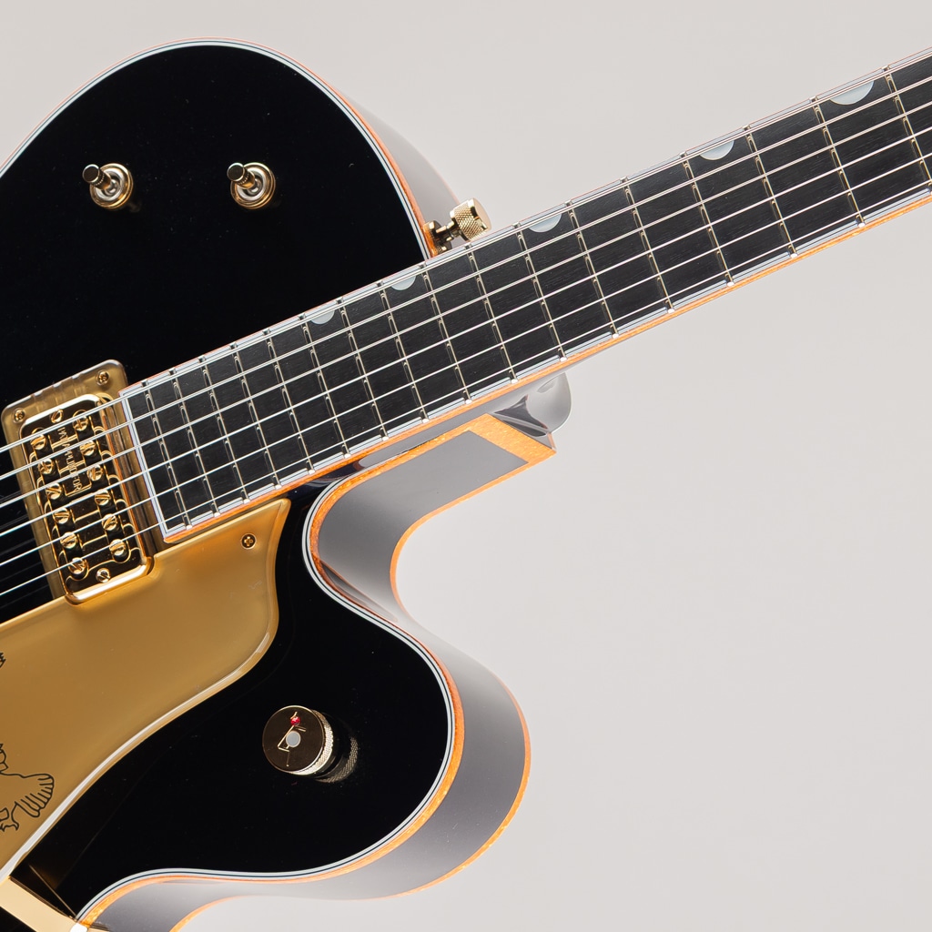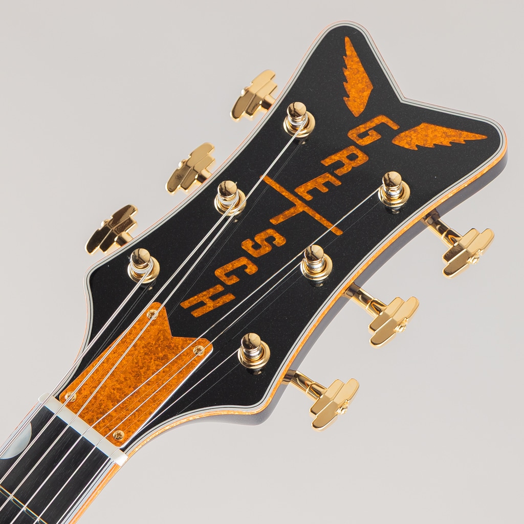 ピュアなトーンと快適な弾き心地を追求し、クラシックとモダンな仕様を融合。ジュエルドG-Arrowノブ、マルチプライのパーフリング付きゴールドスパークルバインディング、パーロイドNeo-Classicサムネイルインレイ、蓄光式Luminlayサイドドット、ゴースト処理されたGretschロゴとFalconグラフィックをあしらった厚みのあるゴールドヴィンテージプレキシピックガード、Bigsby B6GPストリングスルーヴィブラート、ピン留め式エボニーべース付きSpace Controlブリッジ、ボーンナット、Grover Imperialチューナーなどの特徴を備えています。過去から蘇ったような佇まいに、洗練されたスタイルとサウンドを融合したこの1958 Custom Falconは、群衆の中でひときわ輝く存在感を求めるプレイヤーを必ず満足させる一本です。
