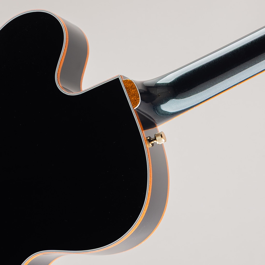Limited Edition 1958 Custom Falconは、2.75インチ厚のメイプルボディにトレッスルブレーシングを採用。1958年に初登場し、1959年に改良されたトレッスルブレーシングは、ボディトップの長さにわたって架かる2本の“橋”状ストラットと、ボディバックに接する4つの“足”で構成されています。この構造により、歯切れの良い素早いアタック感、優れたサスティン、そして高いフィードバック耐性を実現しながら、楽器本来のホロウボディのニュアンスをしっかりと残しています。