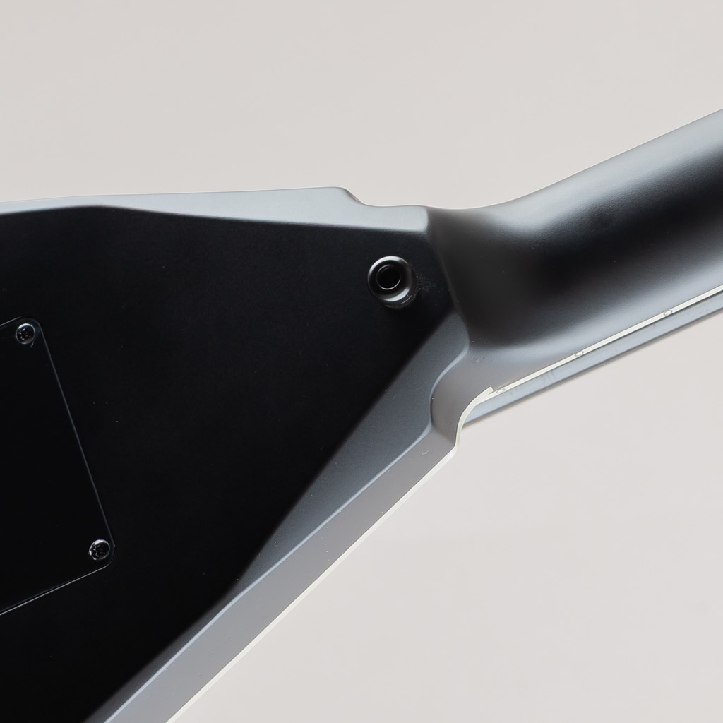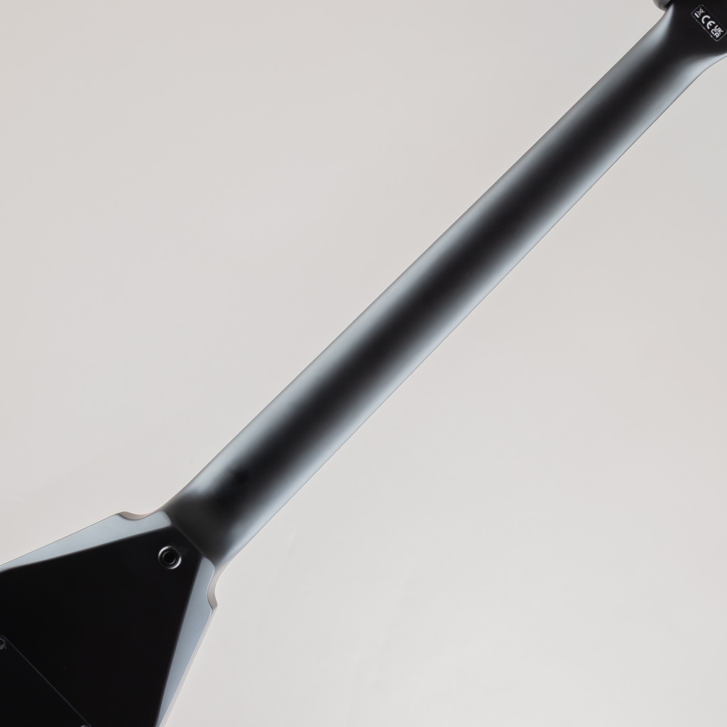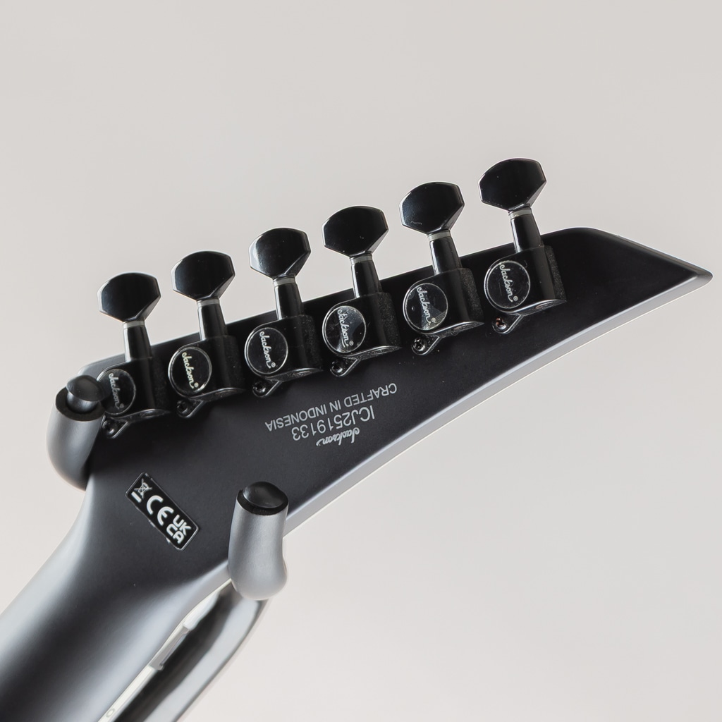 RR1Aは、高速プレイのためにエンジニアリングされた1-plyバウンドポプラボディにグラファイト補強ロッドを内蔵した3ピースメイプルスルーネックを装備しています。24本のジャンボステンレスフレットを採用したコンパウンドラジアスエボニー指板にはシャークフィンインレイが施され、Jacksonのスタイリングも健在です。