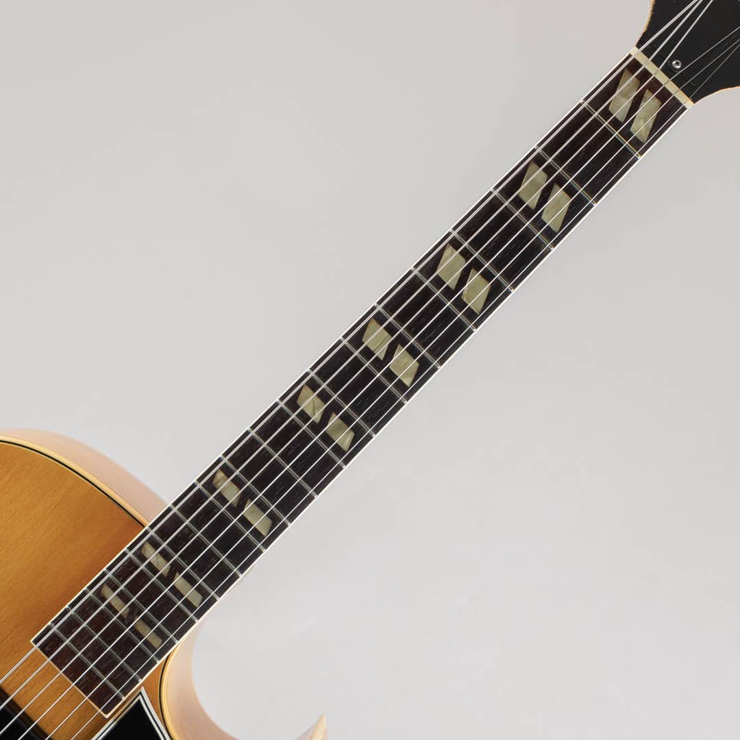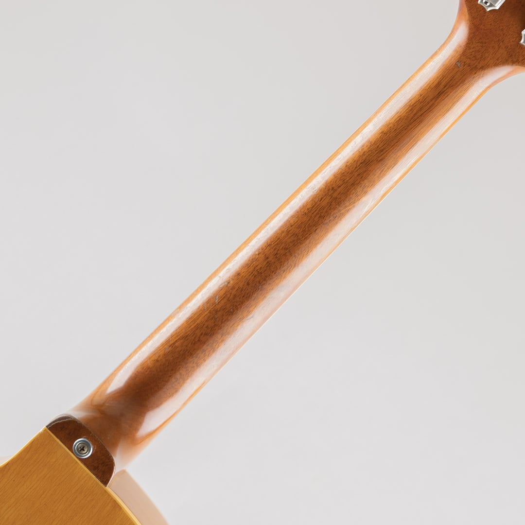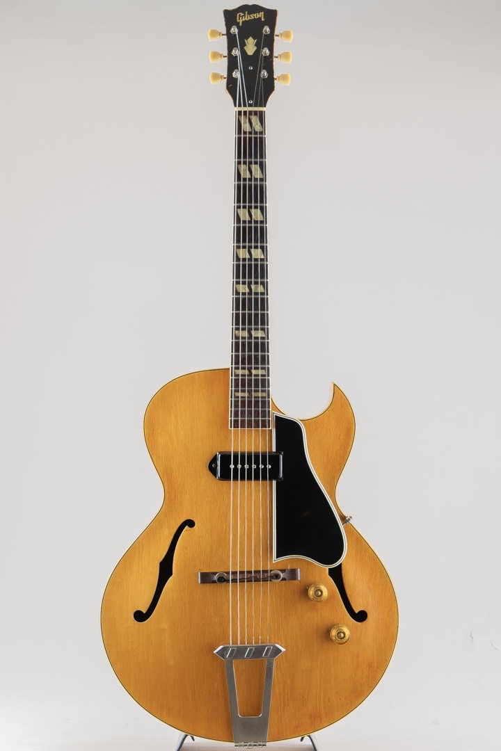 49年の発表以来、Gibsonを代表とするフルホロウモデルとして人気の高いES-175。ラミネイトメイプルボディ/ワンピース・マホガニーネック/ハカランダ指板にて構成されたウッドマテリアルと、16インチボディからなるエアー感を多分に含みながらも適度な硬質さを併せ持った鳴りは、近年代モデルではなかなか感じ得ないこの年代特有のサウンドでございます。P-90ピックアップからなる、煌びやかでありつつも適度な太さを持ったスムースなアンプサウンドも魅力的。