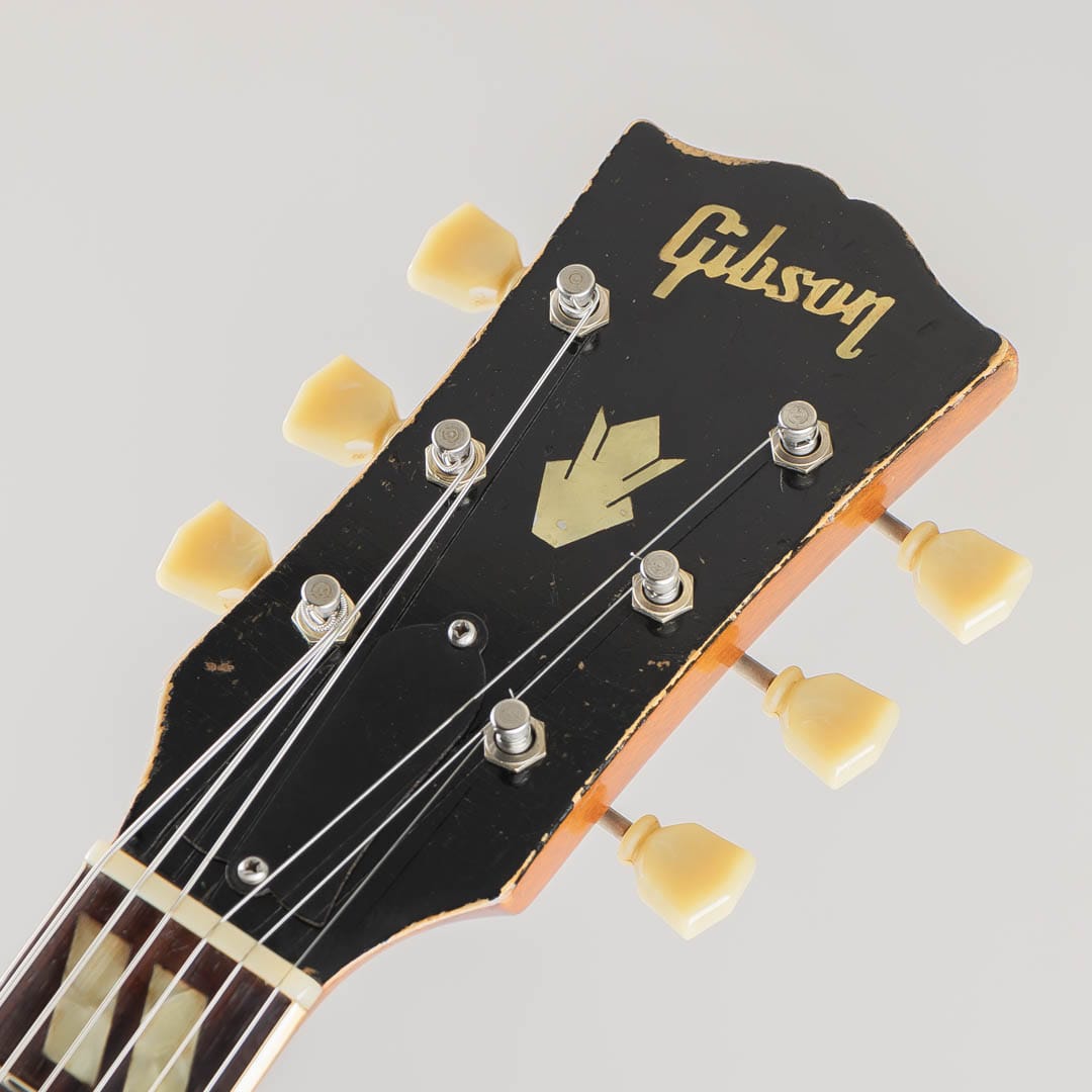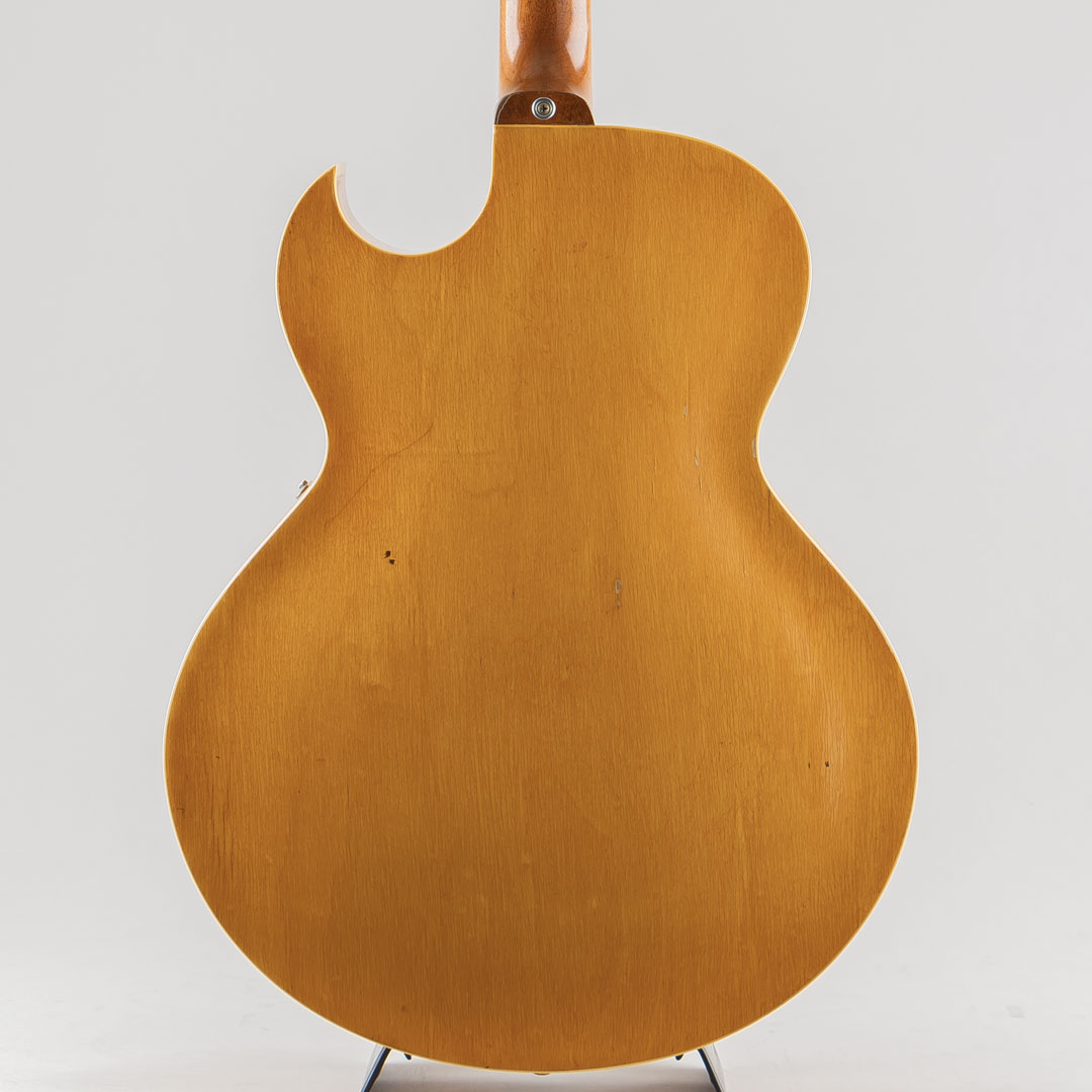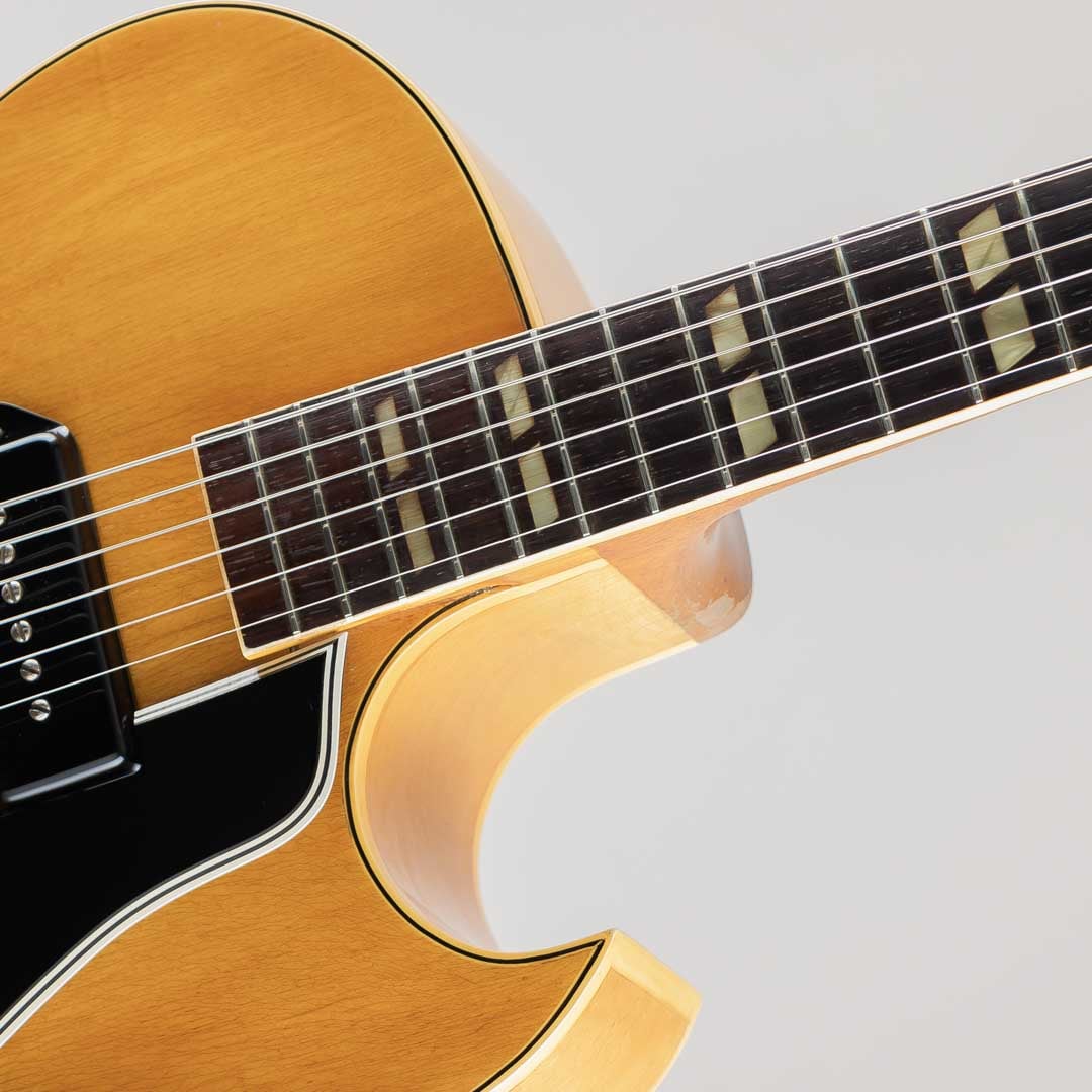 49年の発表以来、Gibsonを代表とするフルホロウモデルとして人気の高いES-175。ラミネイトメイプルボディ/ワンピース・マホガニーネック/ハカランダ指板にて構成されたウッドマテリアルと、16インチボディからなるエアー感を多分に含みながらも適度な硬質さを併せ持った鳴りは、近年代モデルではなかなか感じ得ないこの年代特有のサウンドでございます。P-90ピックアップからなる、煌びやかでありつつも適度な太さを持ったスムースなアンプサウンドも魅力的。