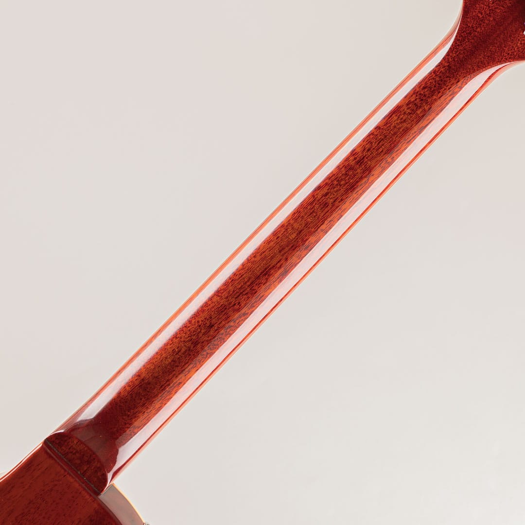 ウッドマテリアルは、フィギュアドメイプル / マホガニーバック / マホガニーネック / ローズウッド指板にて構成。本機のメイプルはどこかキルトメイプルを彷彿とさせるような、開きのある杢目が特徴的。見る角度や光の当てる角度を変えることで、浮き上がってくる立体感は見ているだけでも満足感を得られるクオリティ。VOSフィニッシュによる、マットな質感とチェリーからの組み合わせもマッチしております。ネックシェイプは太めのR8らしい握り心地。とはいえ、手に吸い付くようなグリップ感が心地よく、演奏のしずらさを感じえるほどではございません。ネックと指板の接着には2014年モデル同様ニカワが採用、その他ロングスタッド&ロングアンカー / オールドスタイルのチューブレス・トラスロッドなどが搭載されております。