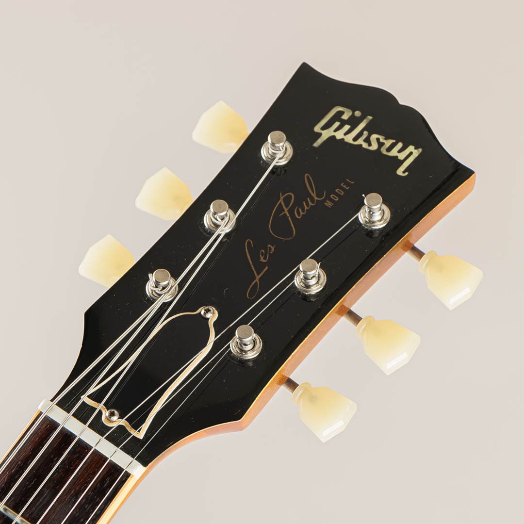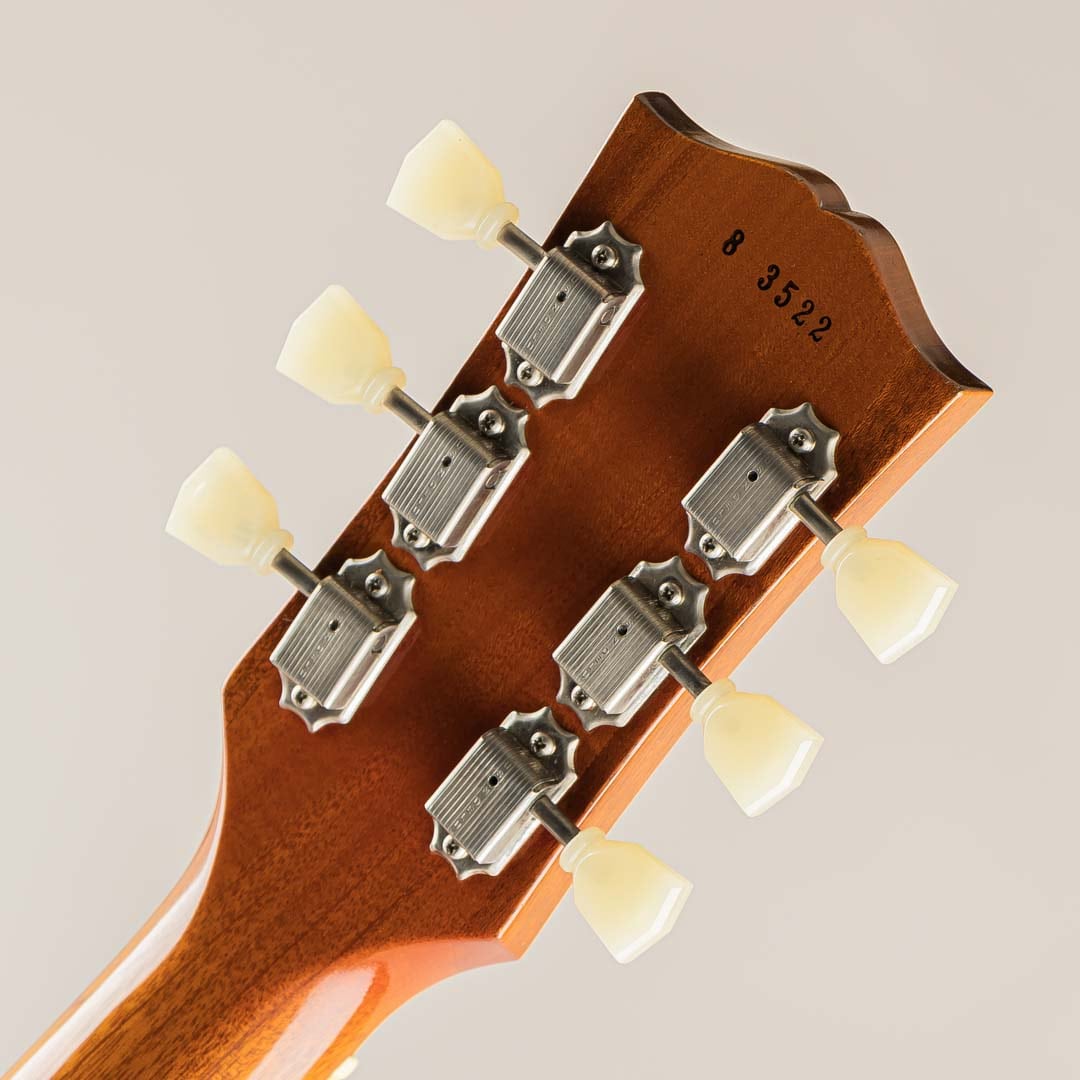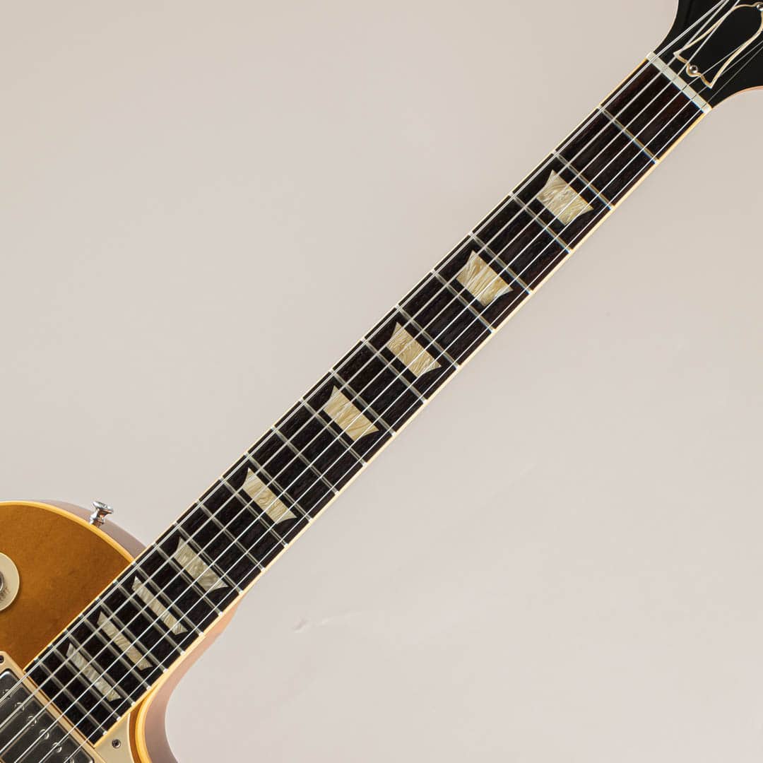 ウッドマテリアルは、プレーンメイプルトップ / ワンピースマホガニーバック / マホガニーネック / ローズウッド指板にて構成。ナット幅は約43mmほどとなり、この年代らしい太くしっかりとした握り心地が特徴的なネックシェイプでございます。道管がしっかりと詰まったマホガニー、黒々しく高級感のあるローズ指板、所々にフレックが散見し鈍いきらめきを覗かせるプレーンメイプル等、カスタム・ショップらしいクオリティの高い木材がふんだんに使用されているのが伺えます。