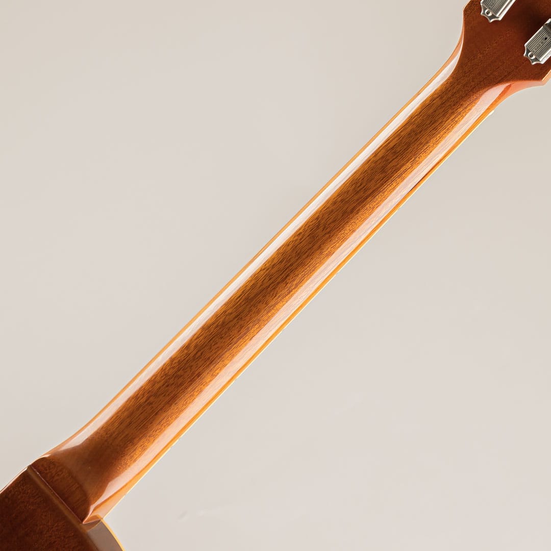 2003年製の本機。Custom Authenticフィニッシュ故金属パーツには元よりくすみ加工などは施されております。アニリンダイに退色が見受けられますが、程よく赤みが残され、マホガニーのウッドカラーと相まってなかなかに渋い印象。細やかな擦り傷、バックに少々の打ち傷等細やかな傷は見受けられますが、遠目からはあまり使用感を感じさせないクリーンな状態を保っております。ペグは一度交換されており、クルーソン・デラックス刻印入りのペグへ交換されております。フレットはローフレットを中心に僅かながら凹凸が見受けられますが、音詰まり等はなく7割強ほどの残量感、トラスロッドの効き幅はまだまだ余力がございますので、これからも使用頂けるコンディションでございます。オリジナルハードケース、認定証、中古保証6ヶ月が付属。