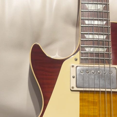 ウッドマテリアルは、フィギュアドメイプル / ソリッド・マホガニーバック / マホガニーネック / ローズウッド指板にて構成。ネックシェイプはグリップ感が心地よく、程よい太さのあるミディアムCシェイプでございます。その他ABR-1ブリッジ / シングルライン・クルーソンペグ等の往年のスペックはもちろん踏襲されており、ロングテノンジョイント / オールニカワ接着ももちろん採用されております。