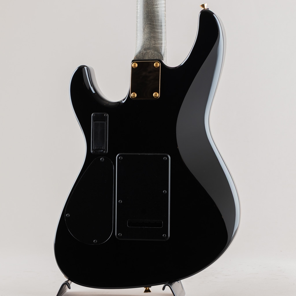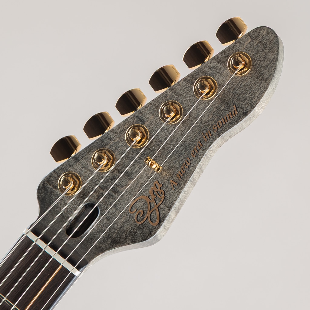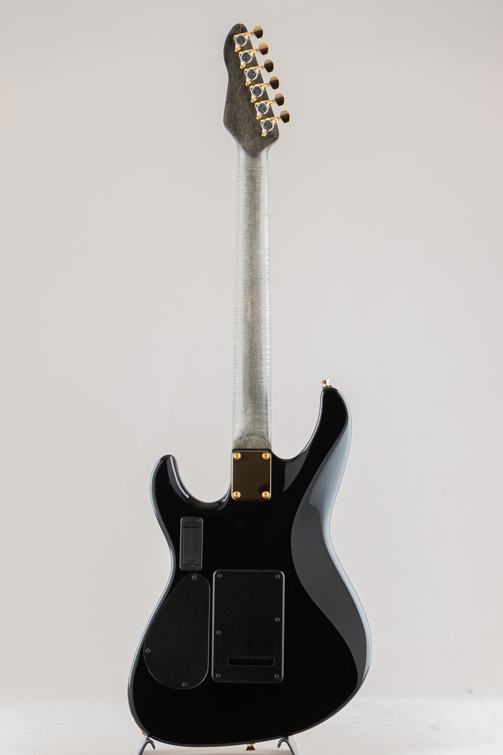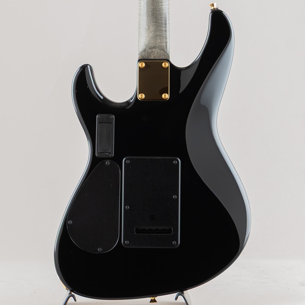こちらはSTシェイプを基としたJASTERのショーモデル。アルダーボディに鮮やかなフィギュアドメイプルネック&エボニー指板。希少かつ個性的な木材に加え、レジンを流し彩られたボディのグラデーションが唯一無二の存在感を発揮しております。また指板面の幾何学的なデザインにもレジンを使用しており細かなポイントに職人の技を感じられます。