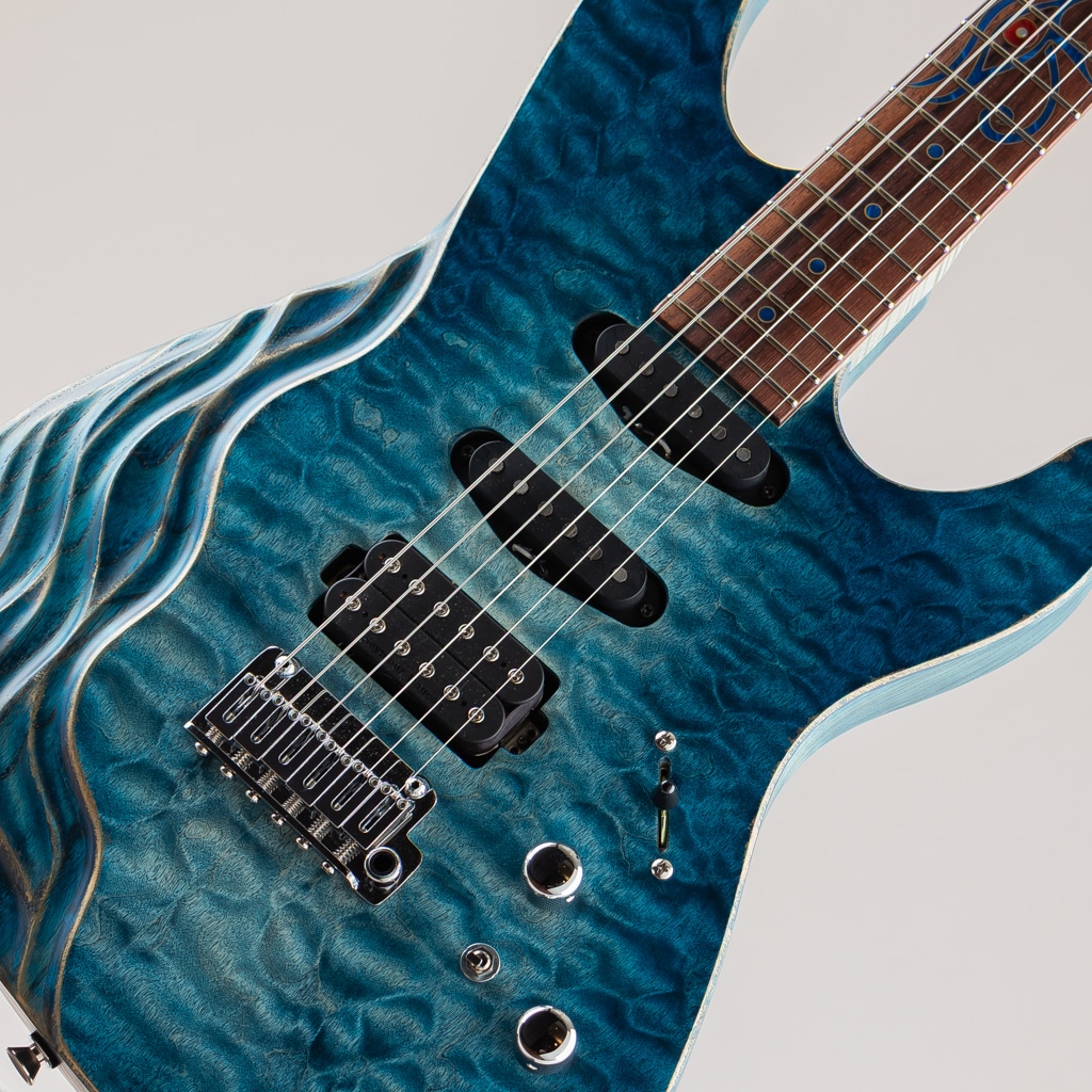ピックアップはダイレクトマウントのSSHレイアウト。太く力強いSeymour Duncan Custom Flat StratとクリアでトレブリーなFull Shredの組み合わせは、歪ませても芯がありハードなプレイスタイルにも最適です。