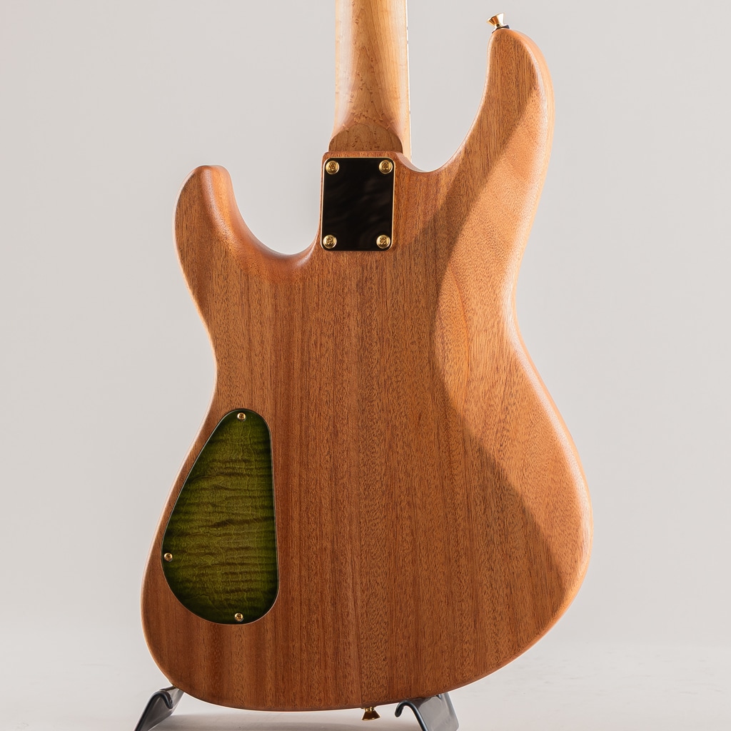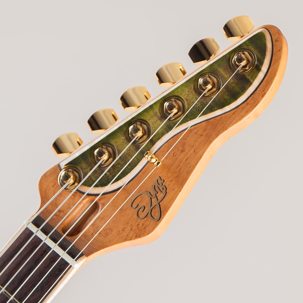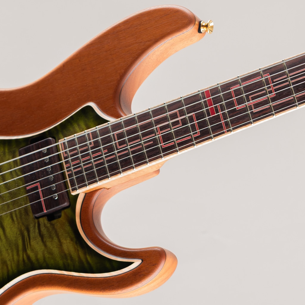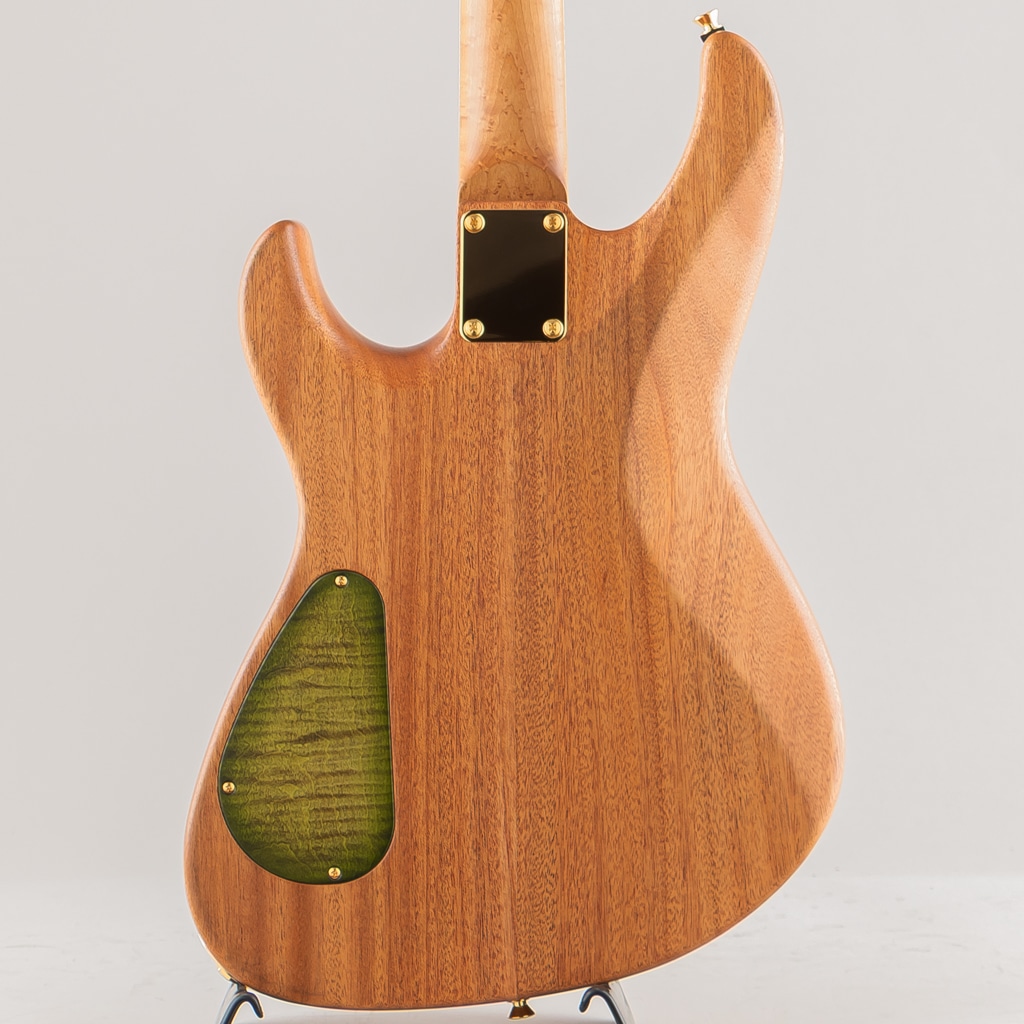 こちらはSTシェイプを基としたJASTERのショーモデル。鮮やかなローステッドバーズアイメイプルネック。ボディはホンジュラスマホガニーをトップ&バックでラミネートし、コンター部にバールポプラを採用。さらに美しいフィギュアドメイプルをピックガードと突板に見立て貼り合わせるという非常に個性あふれるデザインが唯一無二の存在感を発揮しております。緩やかにアーチのかかったトップのメイプルやピックアップカバー、バックプレートや各コントロールノブに至るまで細部にこだわりを感じられる1本です。