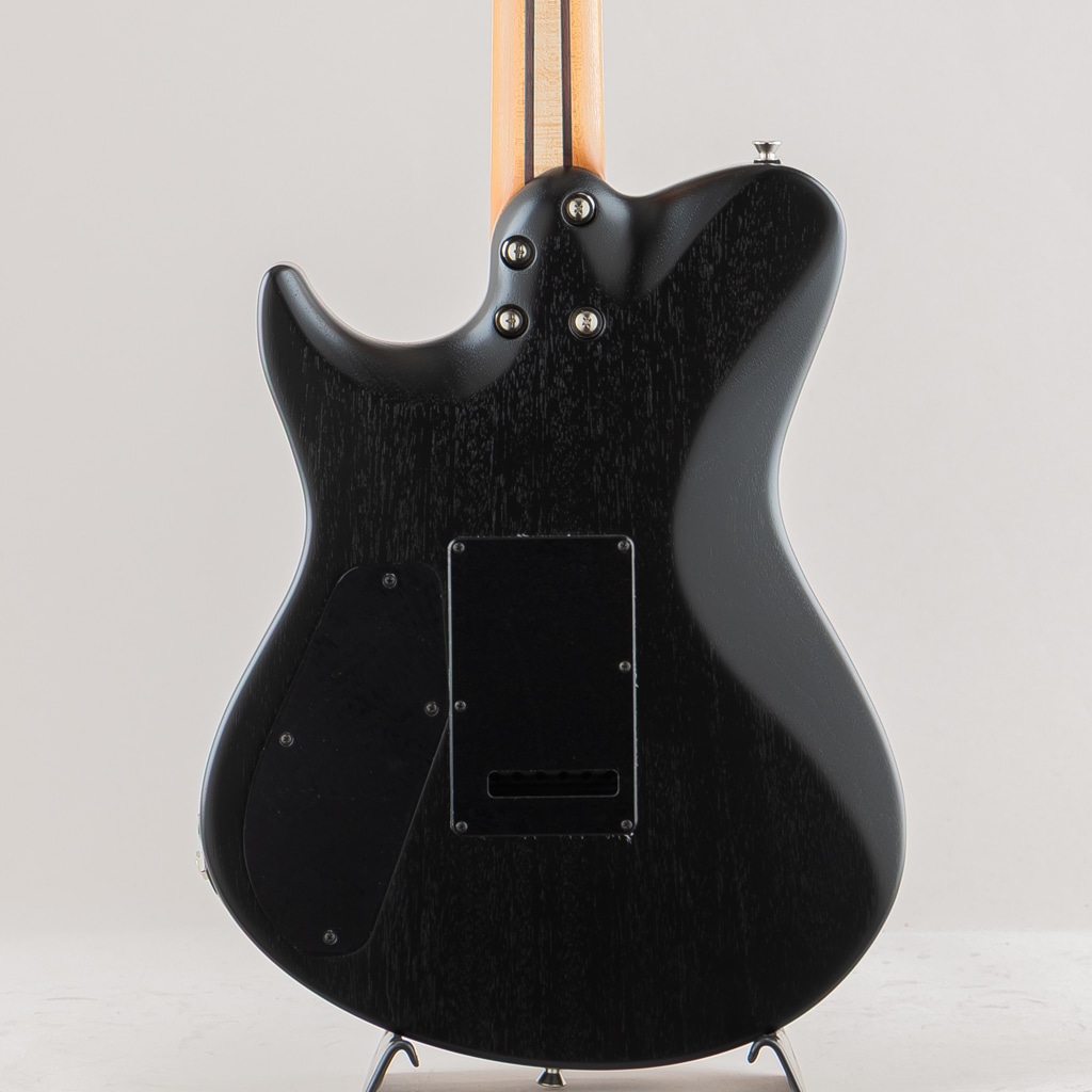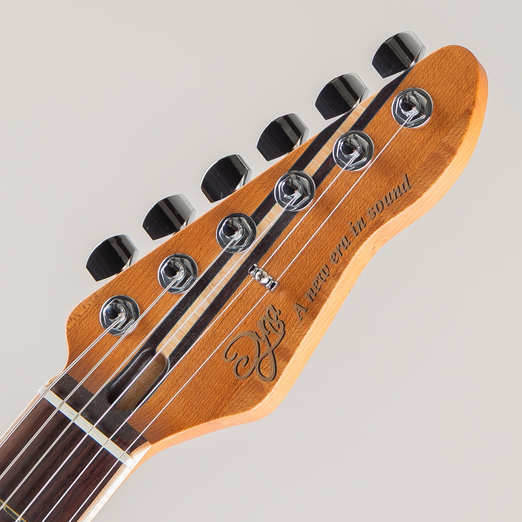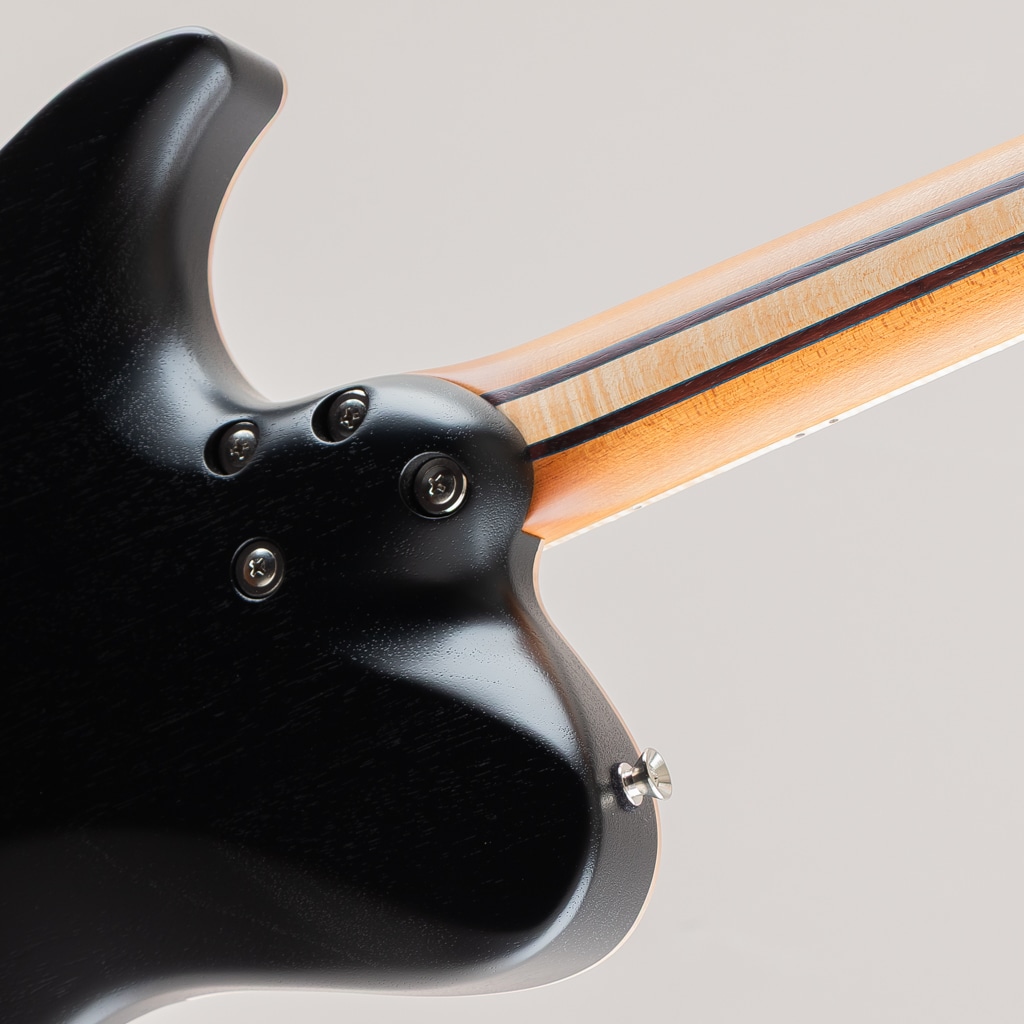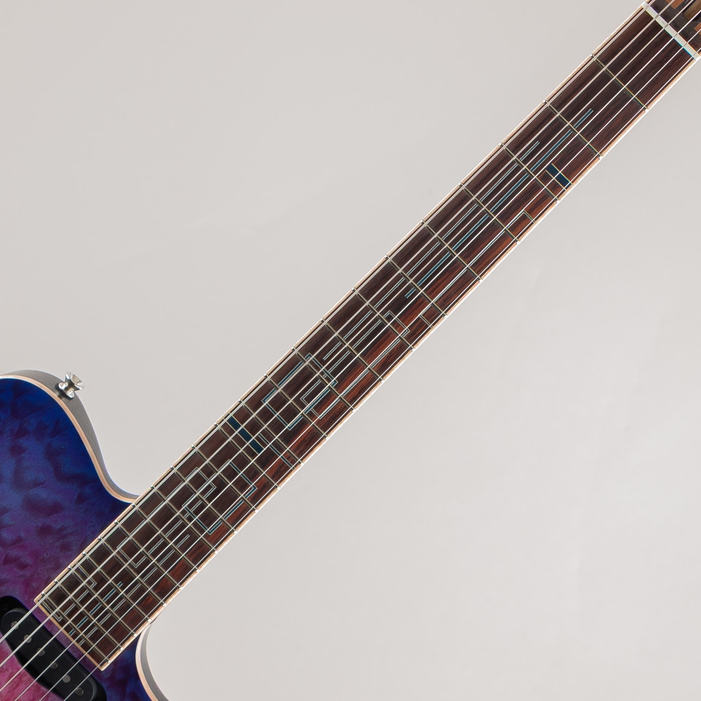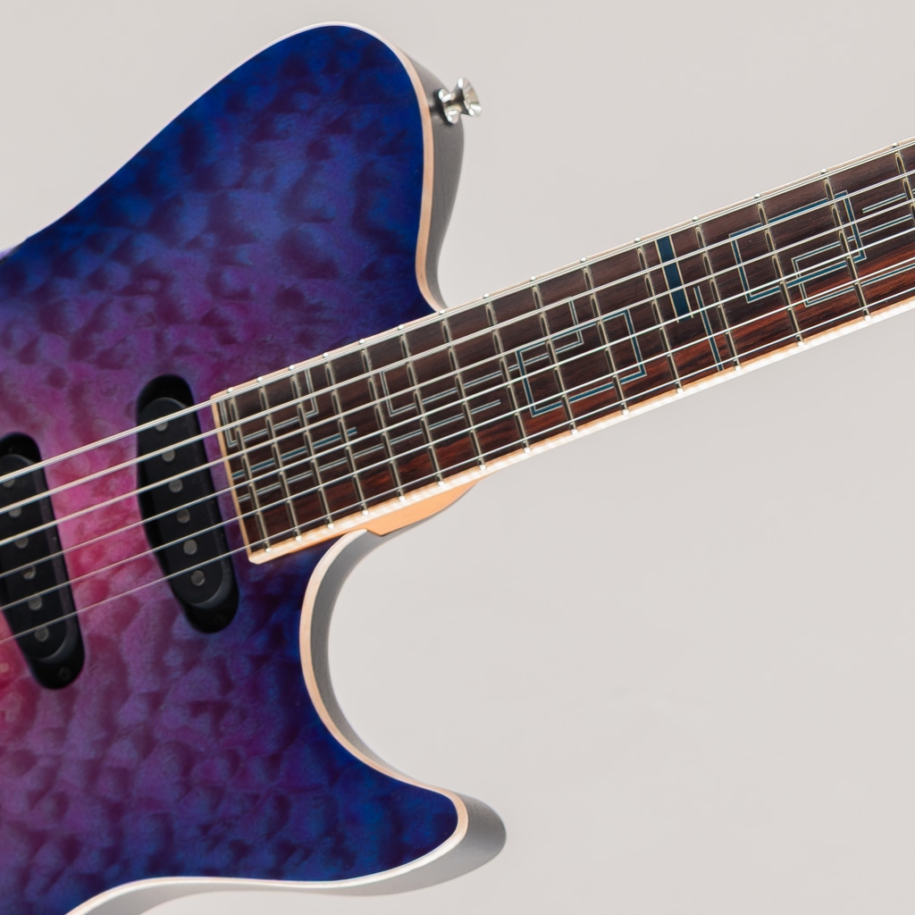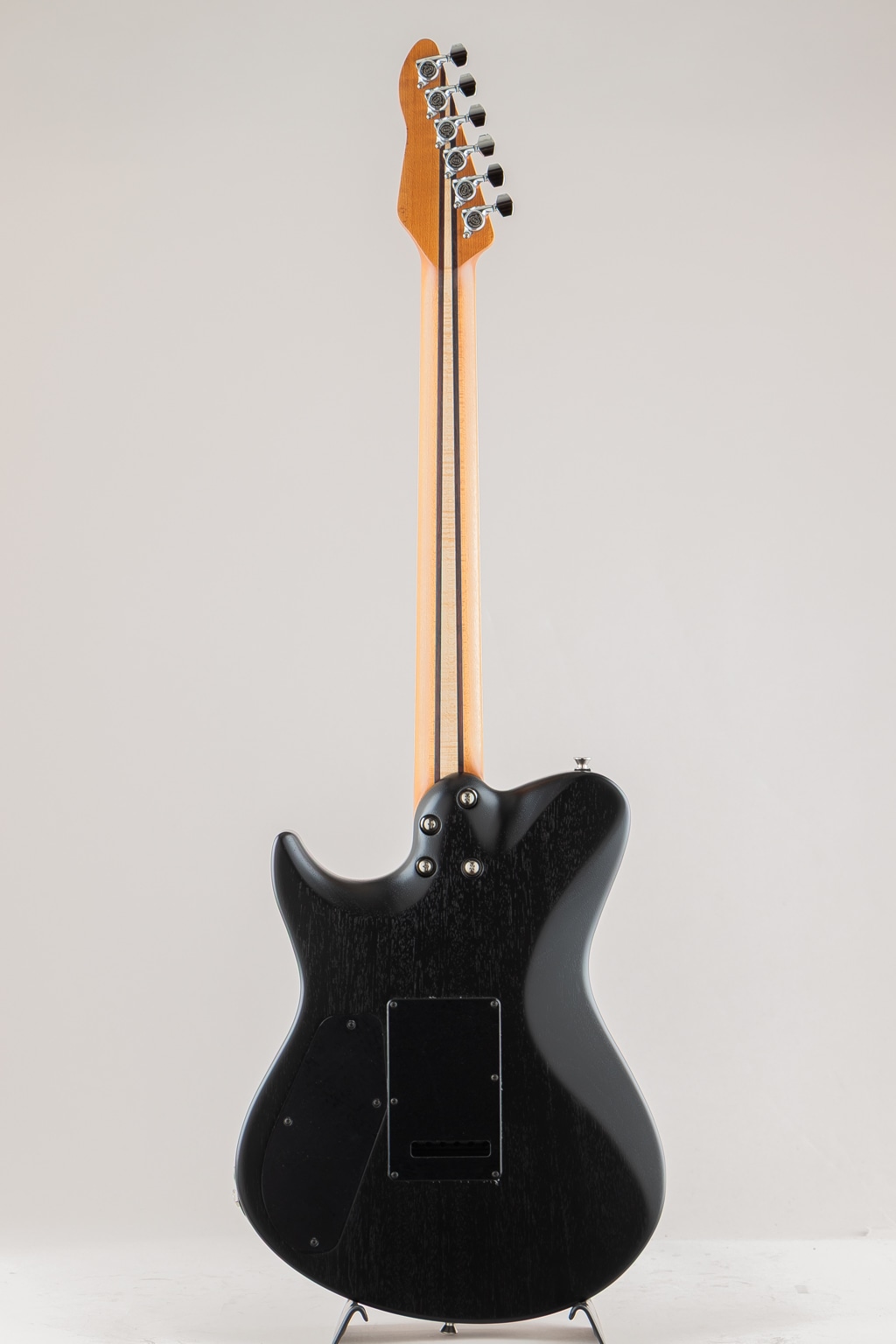 こちらはTLシェイプを基としたMOTIVEのショーモデル。杢の鮮やかなキルテッドメイプルトップのマホガニーボディ、フィギュアドメイプル&ローステッドメイプルネックといった希少かつ個性的な木材を惜しみなく使用しております。コンター部分はまるでトップ面から剥がれ落ちたかのようなリアルな質感が手作業で行われており、高い加工技術と相まって唯一無二の存在感を発揮しております。