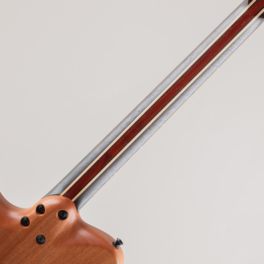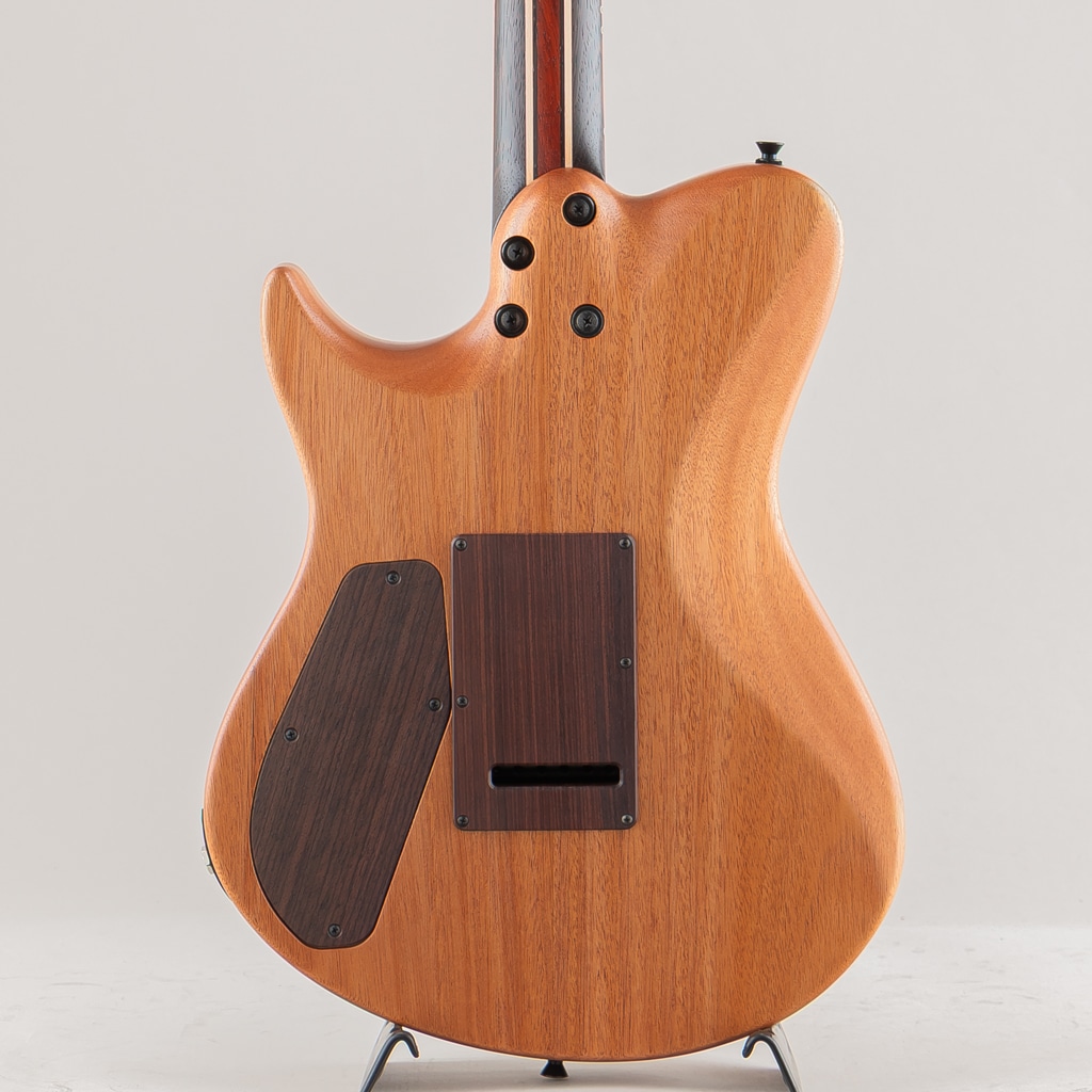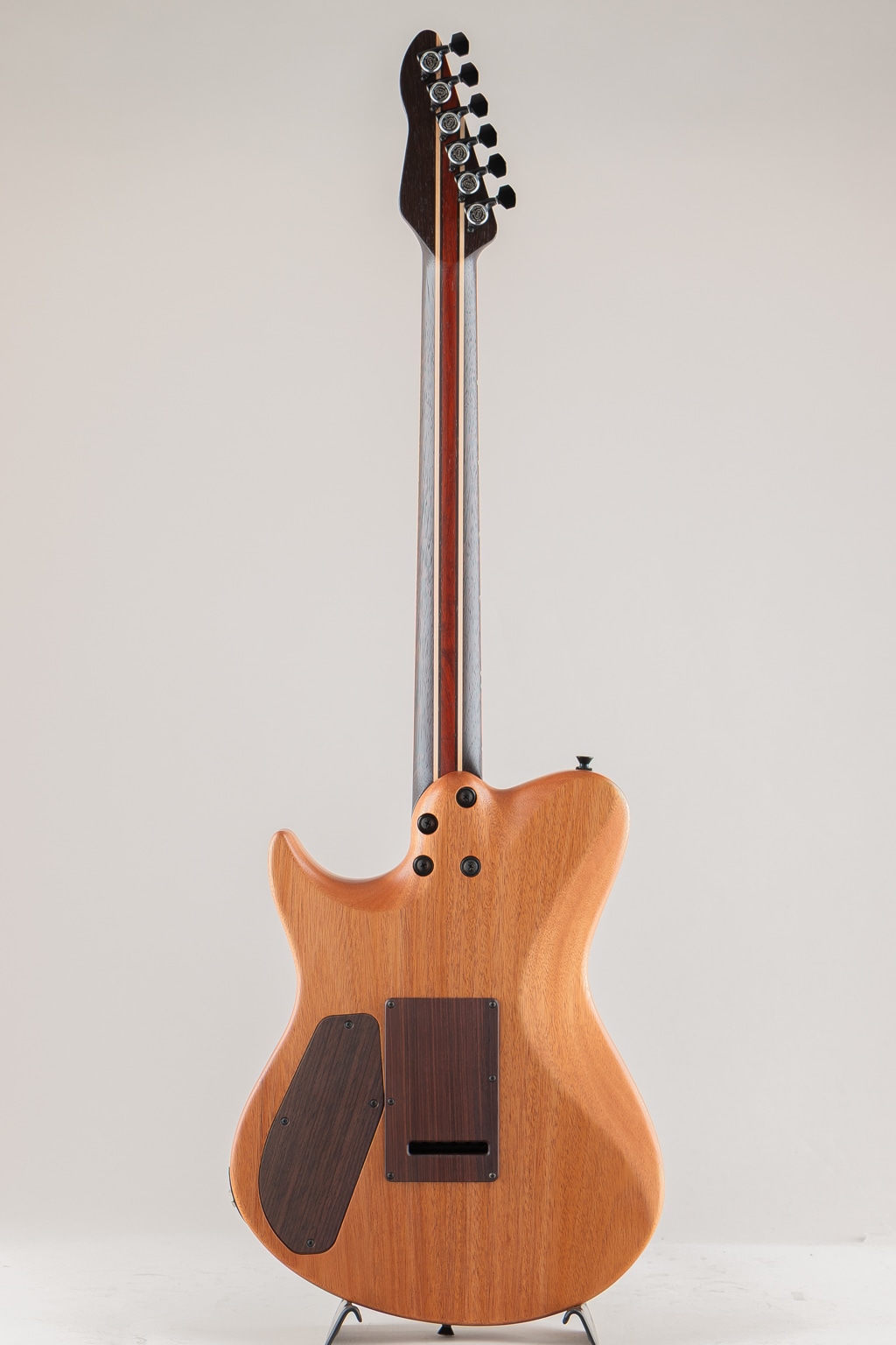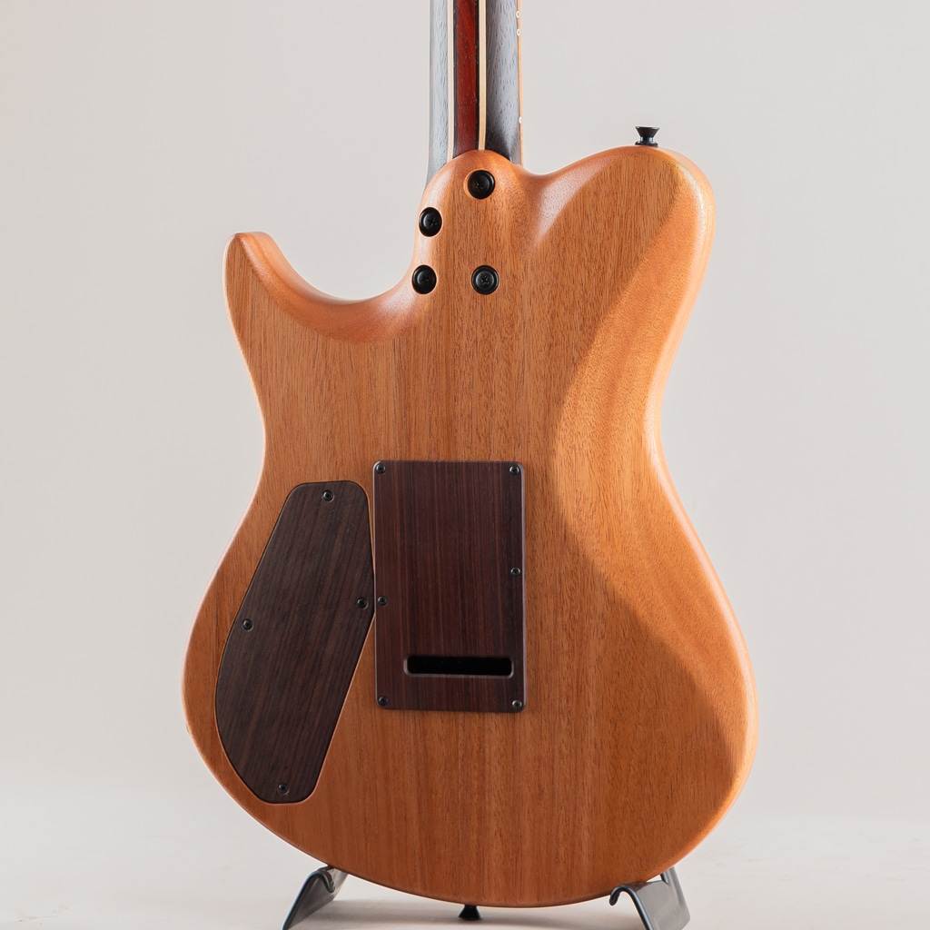 こちらはTLシェイプを基としたMOTIVEのショーモデル。ネックはパドゥーク/ウェンジ/メイプルを使用した強固な7pcネック。ボディはマホガニーをベースに、フィギュアドチェスナット/ローズウッド/フィギュアドメイプル/パーフェローで美しくラミネートされたデザインが唯一無二の存在感を発揮しております。滑らかな曲線のラインやボディとヘッドトップに埋め込まれた蝶等細かなポイントに職人の技を感じられます。