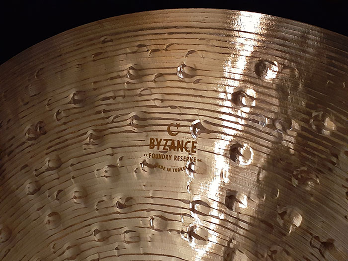 Byzance Foundry Reserve シリーズ・クラッシュは、Byzance シリーズの他のクラッシュと比べて独自の個性を持っています。非常にダークで弾けるようなレスポンスと短いディケイが特徴で、最小限なシンバルセットを最大限に活用したいドラマーには、ライトライドとしても使えるメリットもあります。これはレイジングを施した表面に、さらに広範囲に加えたハンドハンマリングとの組合せによるものです。ミディアムウェイトで、クラッシュの最頂点で豊かなフルボティサウンドが得られます。