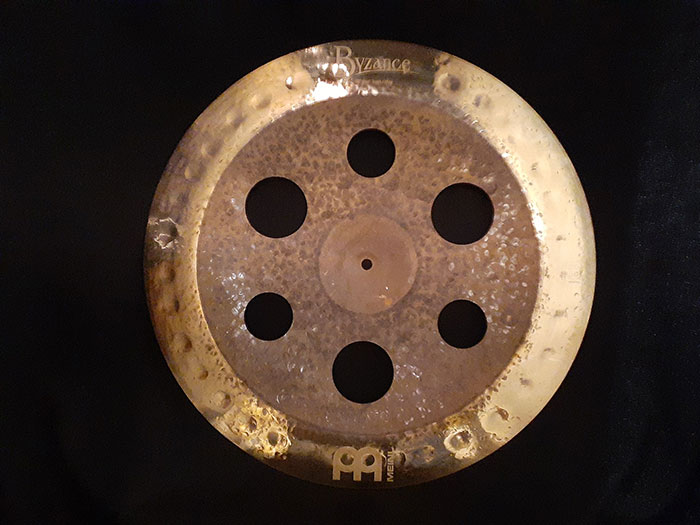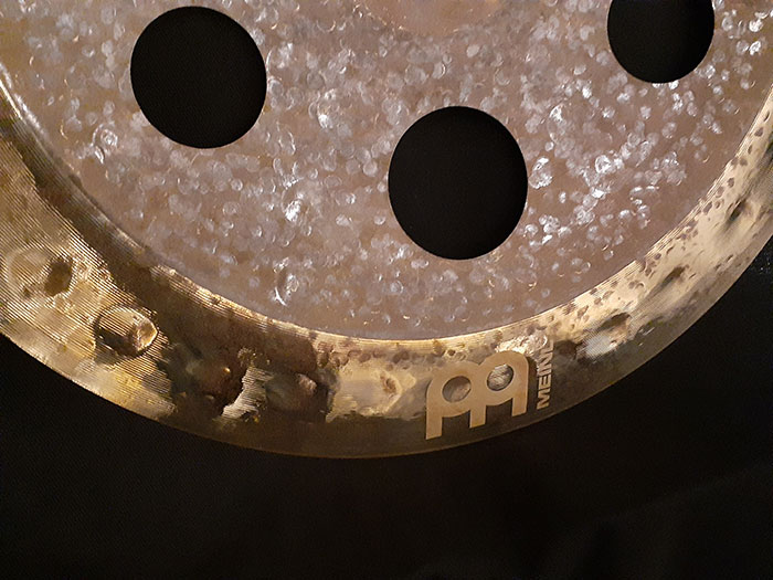 早いレスポンスと絶妙なサステインの減衰で使いやすいと人気のあるマイネルDUALシリーズの穴あきチャイナシンバルです。