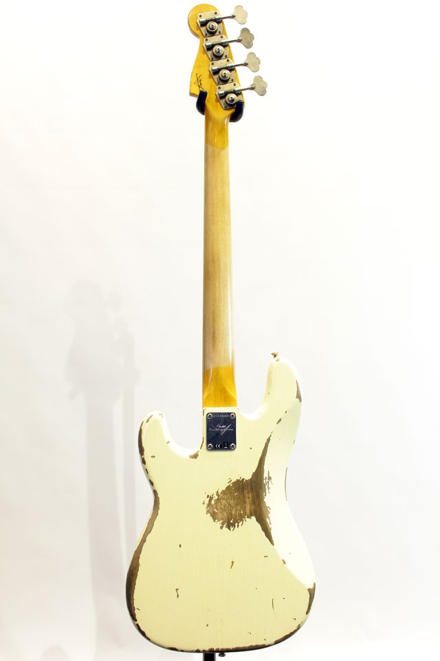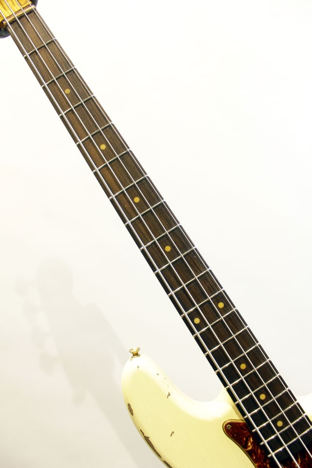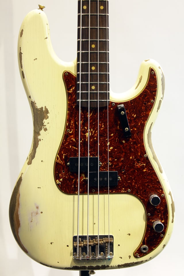2ピースのセレクトアルダーボディは軽量で、Heavy Relicラッカーフィニッシュが施されており、ベースが独自の方法で塗装に覆われているように見えます。滑らかで、色の濃い柾目のメイプルネックには、“‘60s Oval C”型のプロファイルが施され、おなじみの演奏感を獲得するために、9.5インチ(241ミリ)ラジアスの指板を採用。20個のミディアムジャンボフレットを備えています。モダンなHand-Wound '62 P Bassピックアップは、フェンダートーンを一層引き立てます。ヴィンテージスタイルのP Bassワイヤリングによって、望むトーンを自由自在に形作れます。その他の仕様に、4プライのべっこう柄ピックガード、ヴィンテージスタイルのスチールサドルが付いたネジ式のPベースブリッジを搭載。ヴィンテージチューナー、ボーンナット、ラウンド型ストリングツリーを採用し、デラックスハードシェルケース、ストラップ、認定証が付属します。