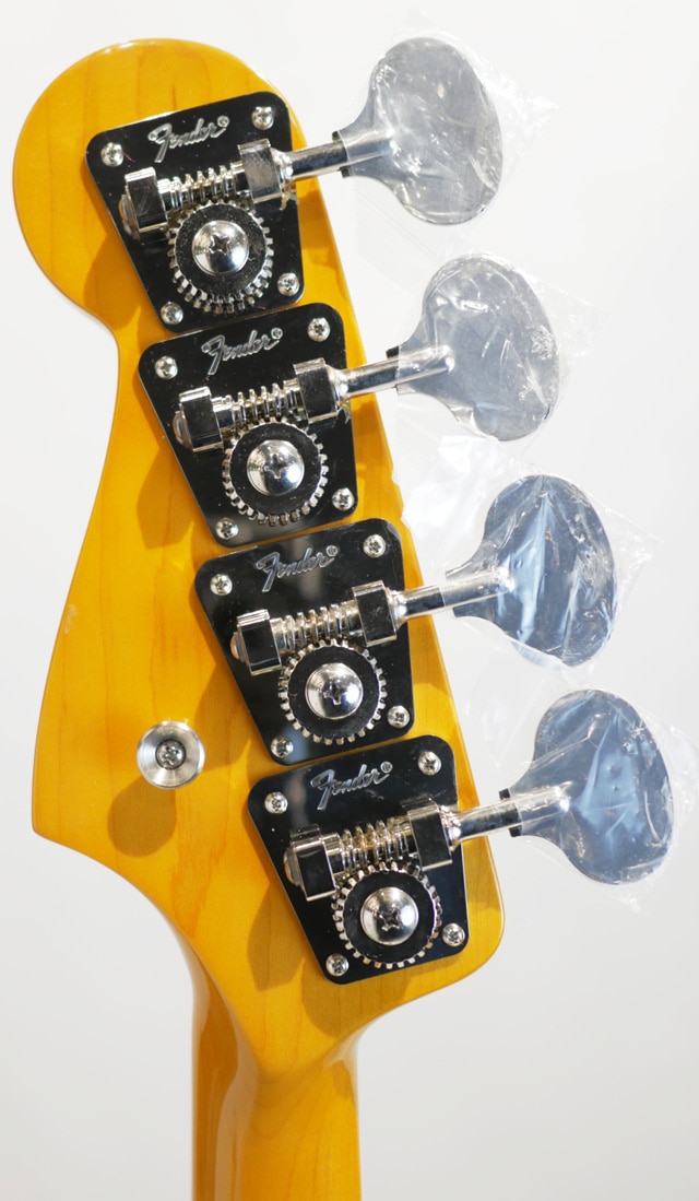 American Vintage Series、American Original Seriesに継ぐシリーズとして発表されたAmerican VintageII。1966年はネックにバインディングが施され、ポジションマークはドットからブロックへとシフトする仕様変更の過渡期になります。この度ラインナップした1966 Jazz Bassは1966年の中でも最初期に見受けられる通称"パウンドドット"期を復刻させたマニアックな仕様となります。装飾以外のスペックはアルダーボディ、メイプルネック/ローズ指板とオーソドックスなスペックになります。ピックアップはこの時期のトーンキャラクターを意識して製作されたPure Vintage '66 Single-Coil Jazz Bassを搭載。ネックはやや細身に設計されている印象で、この時期のビンテージ物にも近しい印象を持ちます。サウンドは中音域を軸に構成されたバランスの良いワイドレンジサウンドをアウトプット致します。ボトムの太さも十分にあり、1966年頃の個体に求められる勝手の良さとバランスの良さを兼ね備えたサウンドも具現化致しております。