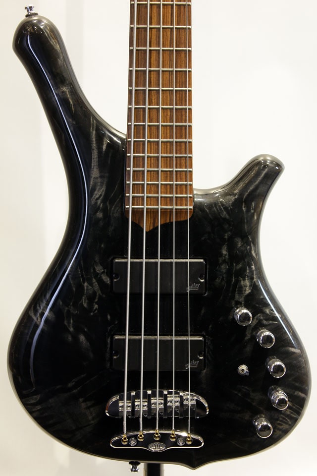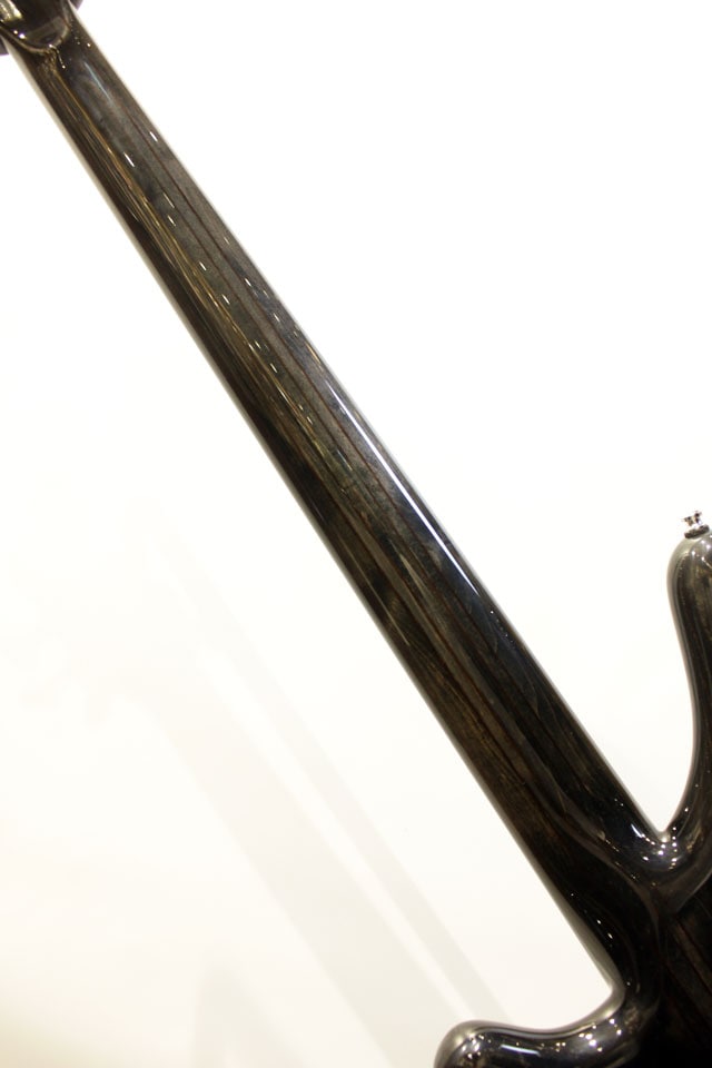 当器はレギュラー仕様の配材ですが、大理石を連想してしまうような、独特なカーリー杢を有するアイポプラトップ、バック材にはライトウェイトなスワンプアッシュを配し、9pcにてラミネイトされたスルーネックが採用されております。