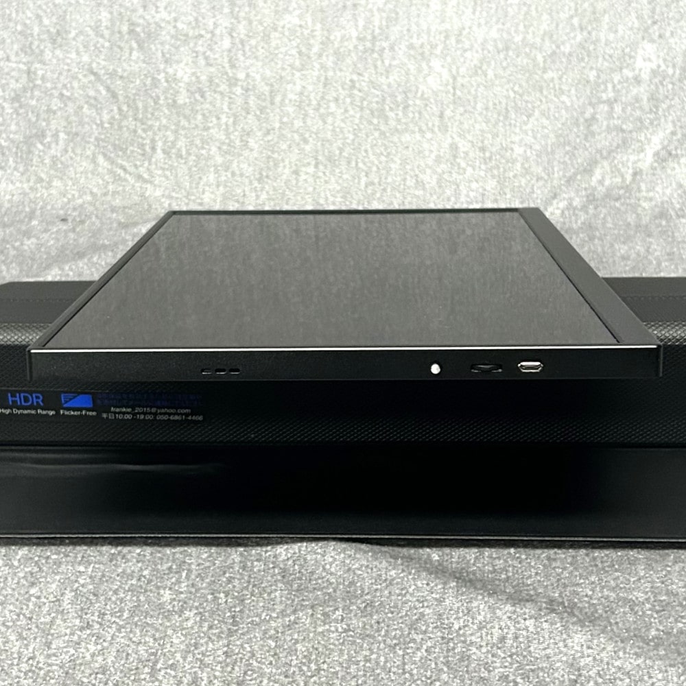 ①CNCアルミ製で、左右のベゼルは幅(4mm)を極限まで細くして、マルチディスプレイ環境でもフレーム幅を感じさせない広大な映像空間を構築できます。下フレームは1.2cmでパネル率は90.8%ぐらいです。