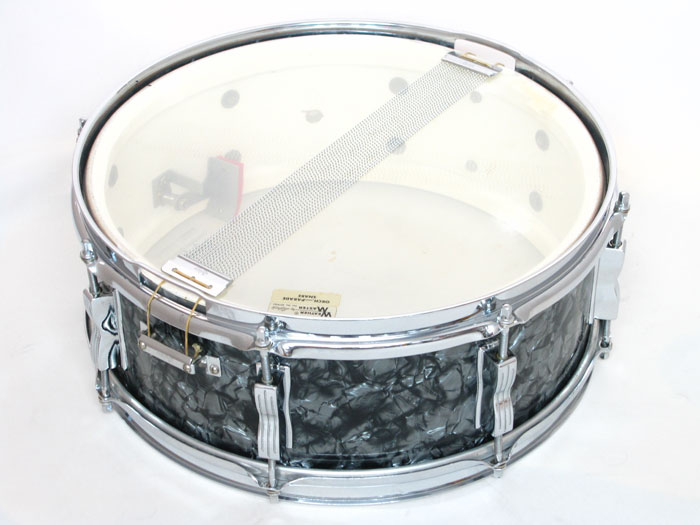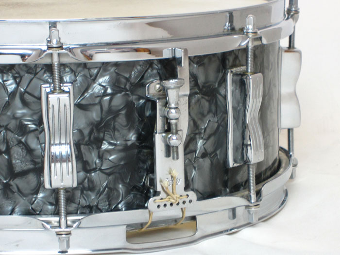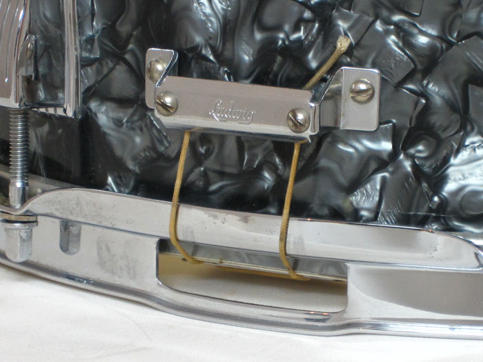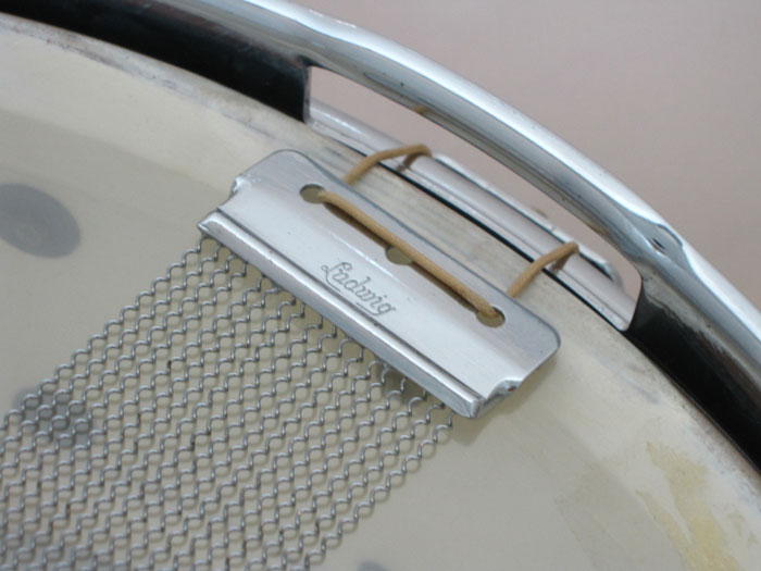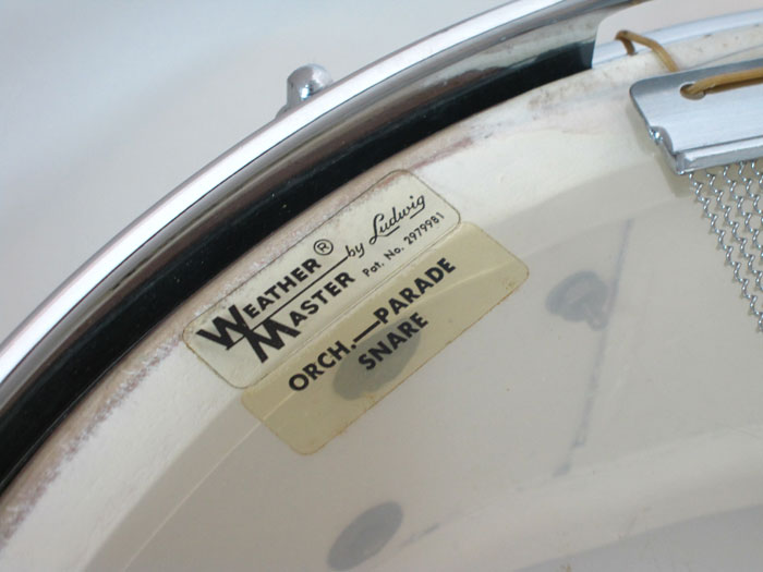 上下フープはオリジナルCOBフープ搭載、内蔵マフラーはベースボールバットで赤フェルト、ラグ、ボルト共にオリジナルでございます。P-83のストレイナースイッチ、バッド側はP-32、スナッピーは60's L-1930ワイヤー20本は若干よれていますがまだまだご使用出来ます。トップヘッドはREMOのコーテッドアンバサダーを、ボトムはオリジナルの「WEATHER MASTER」となっています。ボルトやブラスワッシャーまでオリジナルの逸品となっております。