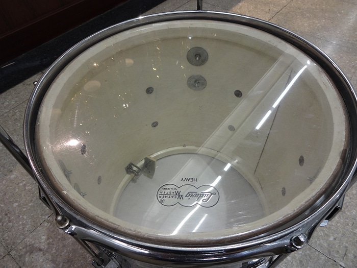 FTはオリジナルPUSH BOTTOM 式ストレートレッグタイプです。レールマウトタムホルダーも美しいオリジナルのままです。 BDフロントヘッドも当時のLUDWIGロゴ入りのオリジナルヘッドが装着されており、いい顔しています。