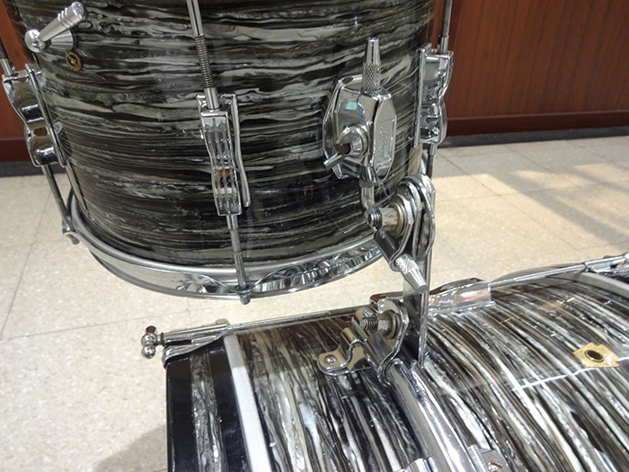 <スペック> SERIES:CLUBDATE SERIES COLOR:ORIGINAL BLACK OYSTER PEARL SIZE:BD/20"X14",TOM/12"X8",FT/14"X14" SHELL MATERIAL:POPLAR & MAHOGANY 3PLY SELL WITH/MAPLE REINFORCEMENT HOOP:12"TOM打面側のみBRASS HOOP装着、その他はSTEEL HOOP BADGE:60S KEY STONE BADGE SERIAL NO:BD:397135/FT:373971/TOM:357627*シリアルより66年製造 DATE STAMP:12"TOM/OCT 12 1966,14"FT/OCT 4 1966、20"BD/*未確認 LUGS:TOM&FT/6LUGS、BD/8LUGS INNER MUFFLER:ORIGINAL BASEBALL BAT TYPE WHITE MUFFLER *BDには帯ミュート装着 打面ヘッド:TOM&FT/LUDWIG COATED MEDIUM,BD/LUDWIG COATED HEAVY ボトムヘッド(BDはフロントヘッド):TOM/NO BRAND CLEAR,FT/LUDWIG CLEAR HEAVY, BD/当時のORIGINAL LUDWIGロゴ入りヘッド
