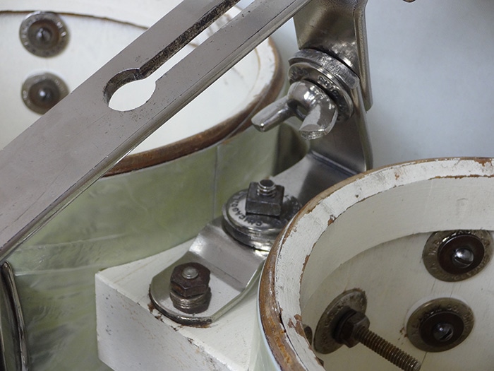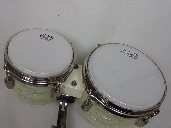 <spec> 年代:1950年代 エンブレムバッジ:WFLキーストーンバッジ サイズ:6"X5.5"、8"X5.5" シェル:マホガニー&ポプラ3プライ(メイプルレインフォースメント付) カラー:オリジナル・ホワイトマリンパール テンション数:両方4テンション フープ:ブラスフープ ラグ:オリジナルスモールラグ ヘッド:LUDWIG ボンゴ用スムースホワイトヘッド 付属品:6"&8" LUDWIG ボンゴ用スムースホワイトヘッド db-1000
