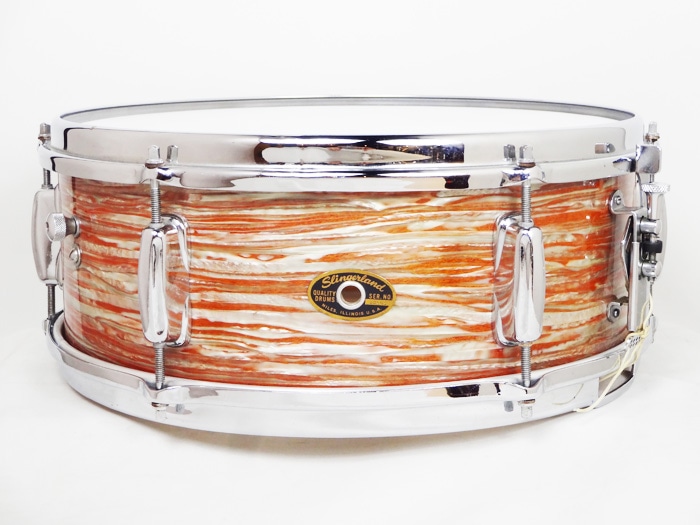 当時「ジーン・クルーパ」や「バディ・リッチ」等、多くのジャズドラマーに使用されていたスリンガーランドドラム。シェル材にはメイプルとポプラを使用し、スリンガーランド特有のなめらかなラウンドエッジにより、柔らかでファットなサウンドが特徴です。