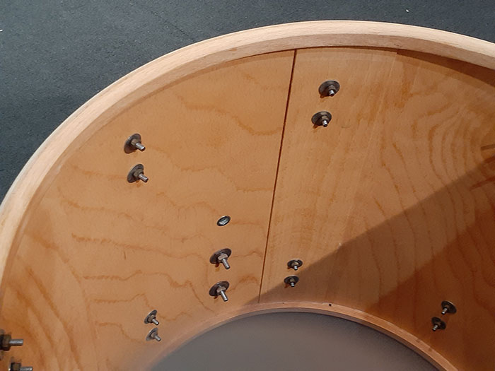 テンションボルトも現行ソナーキーのマイナスタイプチューニングキーに対応します。(この頃のラグの中にはスプリングが装着されていないためヘッド張替えの際は、ラグナットが多少動き気を遣いますがご了承くださいませ。)