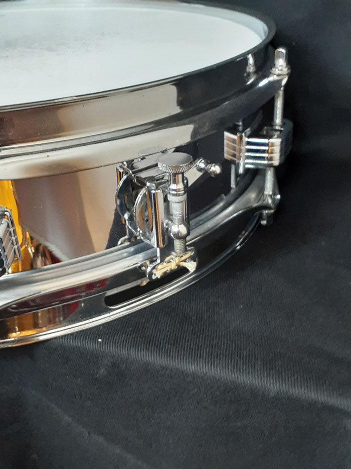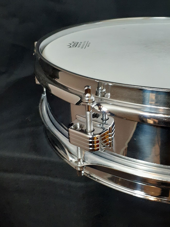 サイズが13"×3"の為、勿論ながらタイトで、ドライなサウンドが特徴ですが、以外にも音量もあり十分メインスネアでお使い頂けるアイテムです。特にファンク等でかなりオススメです。
