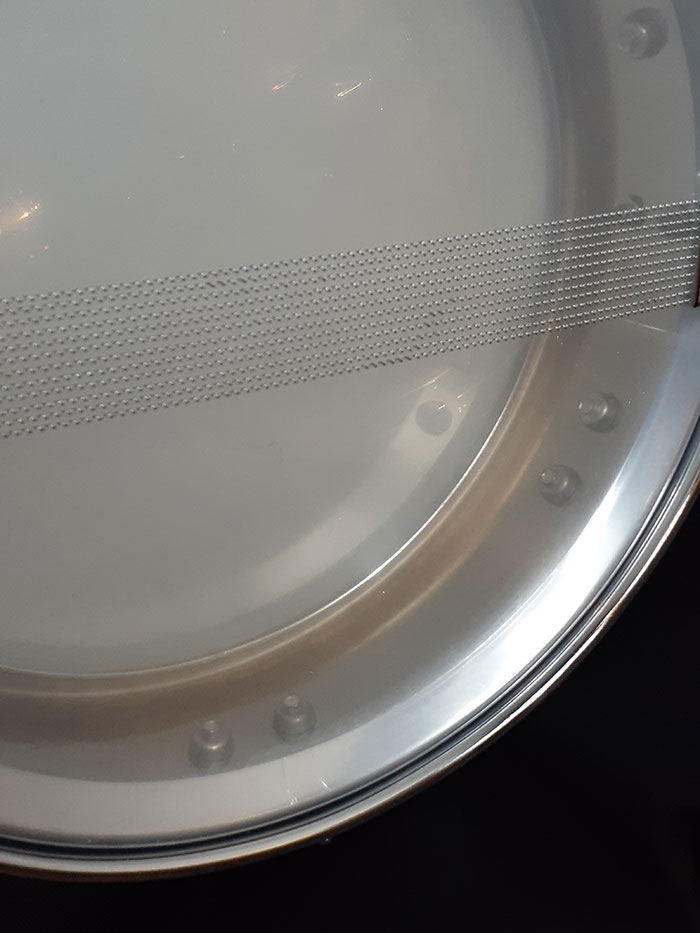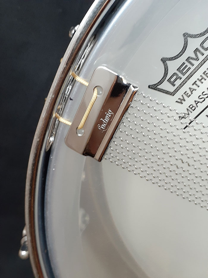 シェルマテリアルは400と同様でラディアロイシェルアルミ合金で、ジャズコンボスネアのメタル盤と言いたところでしょうか。フープはオリジナルスティールフープで、ストレイナースイッチ(P-84)、バット部(P-32)、スナッピーは現行ラディック12本ワイヤーが装着されています。